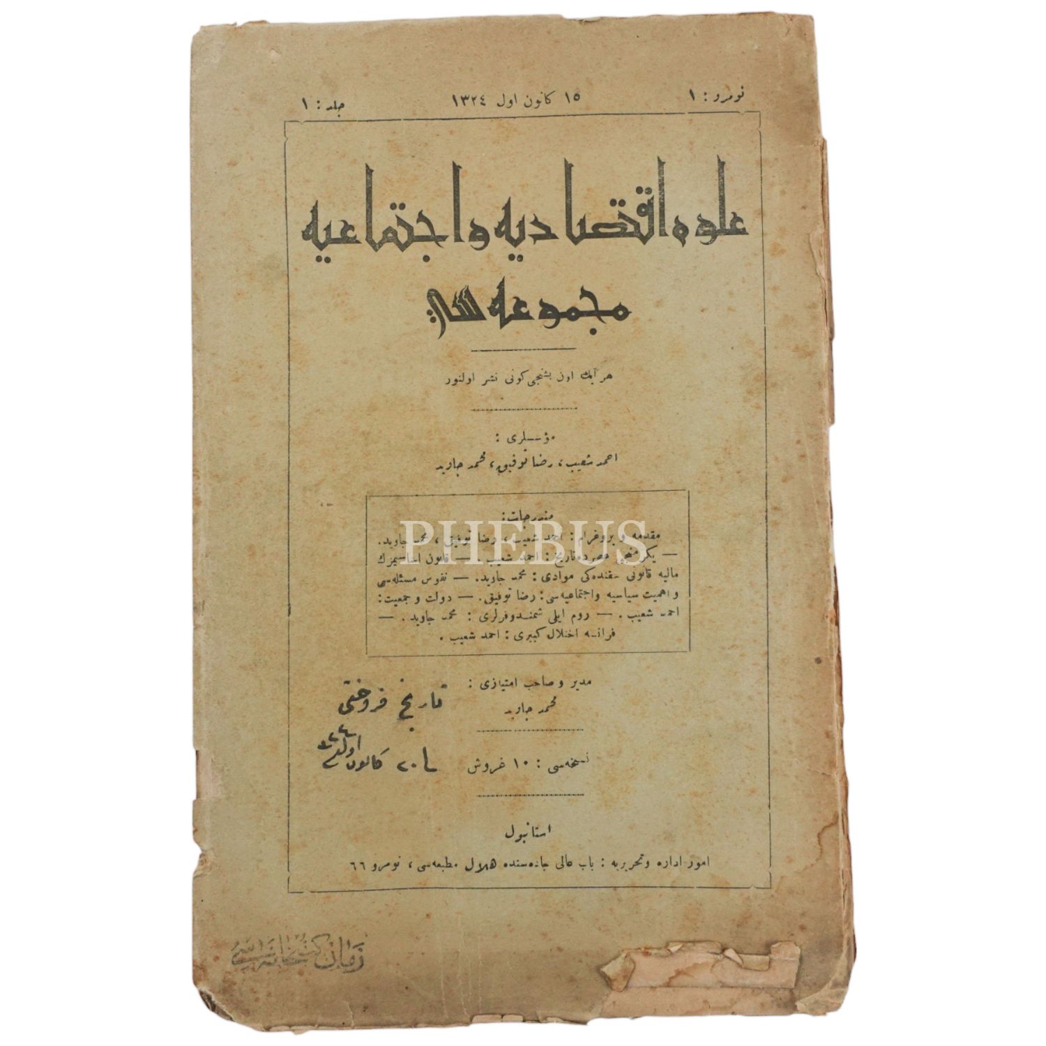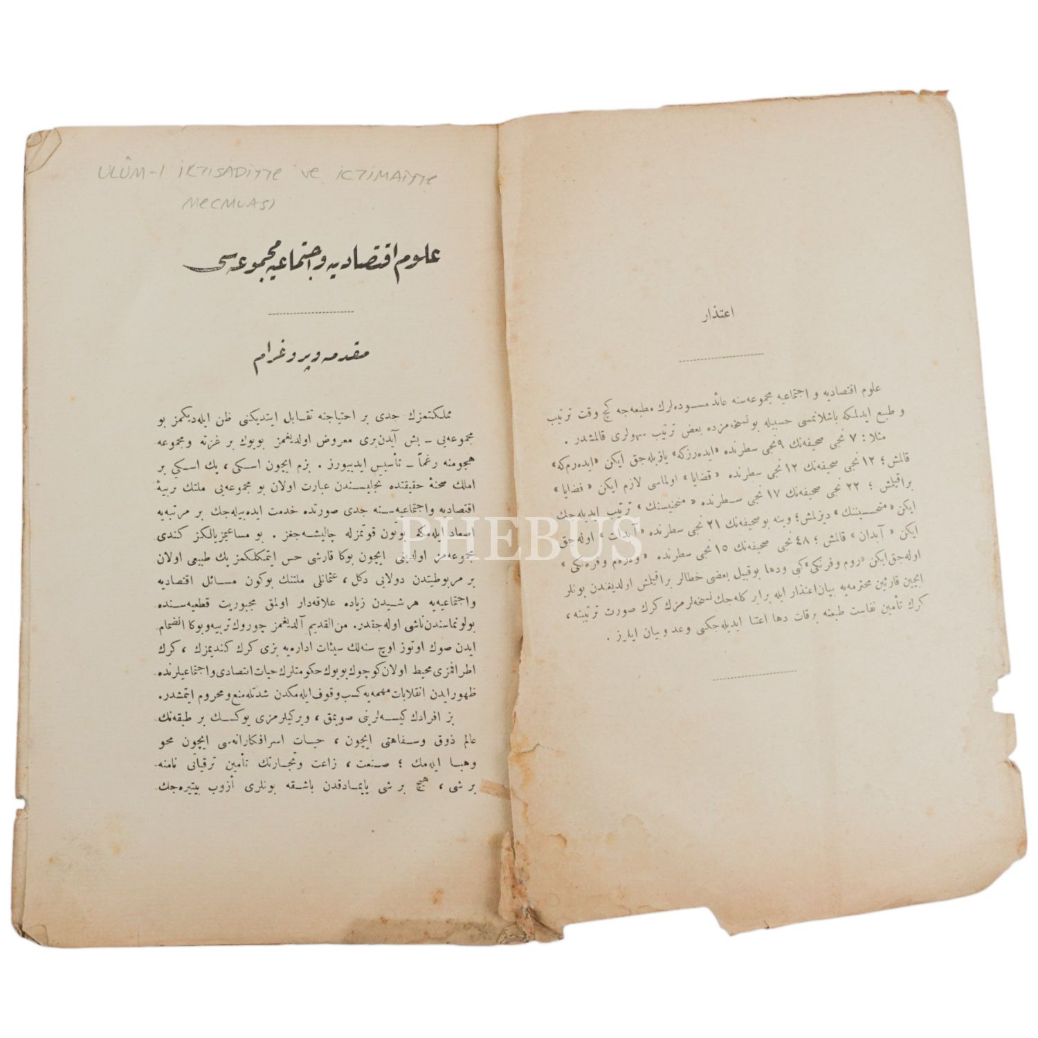 Osmanlı Türkçesinde İktisat ve Sosyoloji dergisi... *Kapakları sırttan ayrılmıştır.