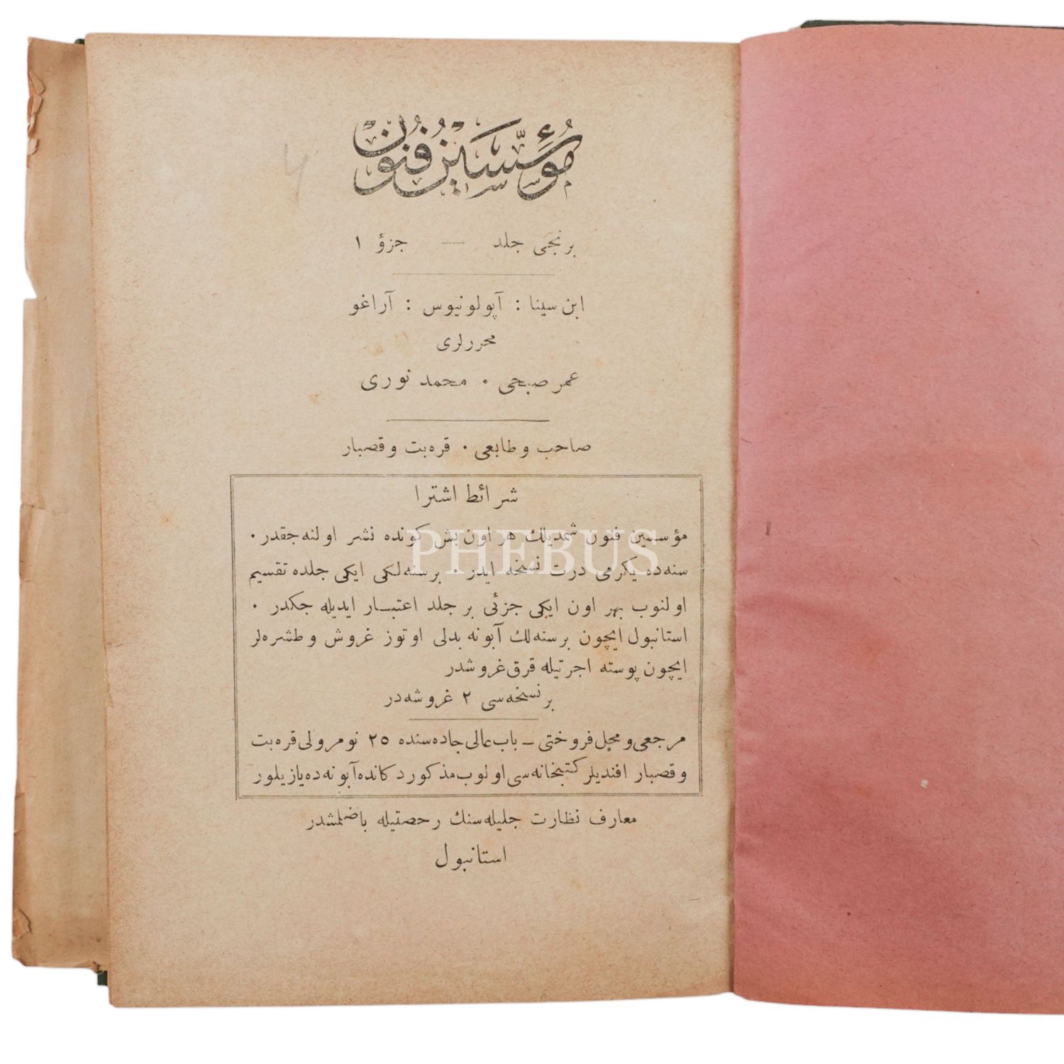 MUSAVVER MÜESSİSİN-İ FÜNUN (1. Cilt), Ömer Subhi - Mehmed Nuri, 1305, Karabet Matbaası, 296 sayfa, 14x20 cm...