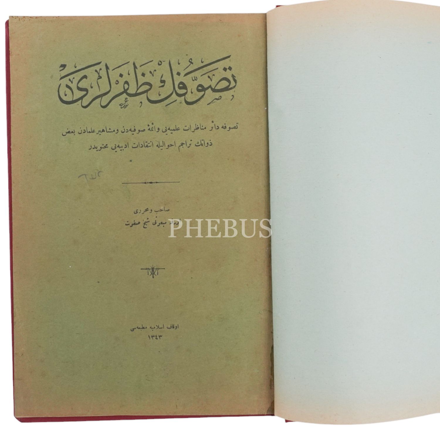 TASAVVUFUN ZAFERLERİ, Şeyh Safvet, 1343, Evkaf-ı İslamiye Matbaası, 158 sayfa, 17x26 cm...
