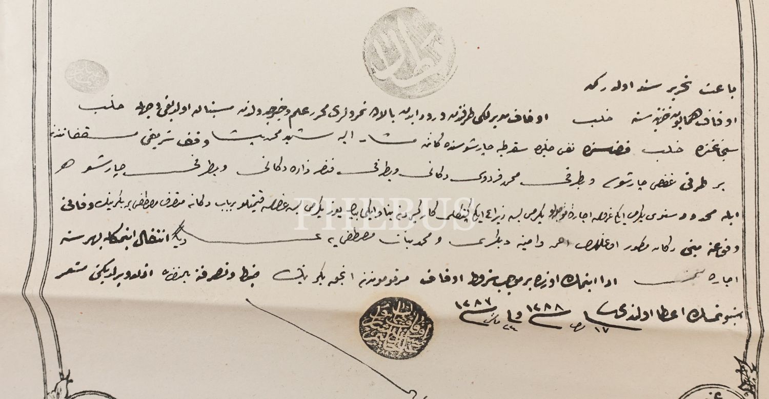 Haremeyn-i Muhteremeyn İdaresine kayıtlı İbrahim Hanzâde Şehid Mehmed Paşa Vakf-ı Şerifine dair temessük.