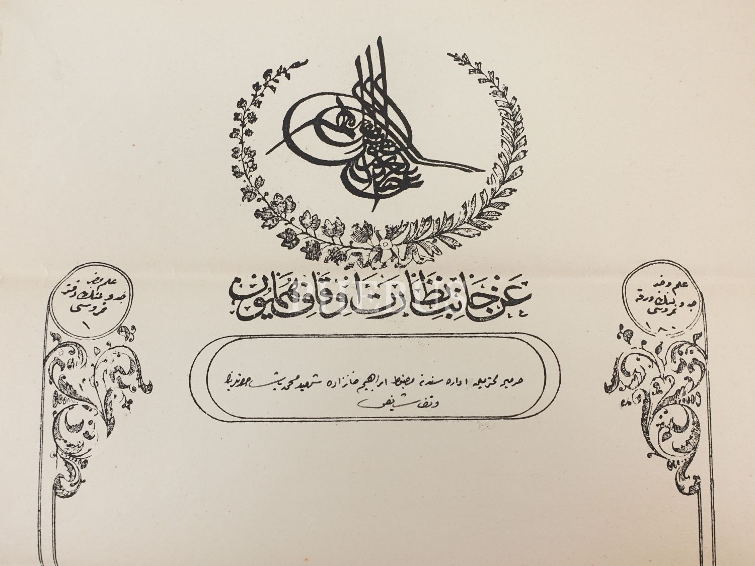 Evkâf-ı Hümâyûn Hazinesine kayıtlı Şehid Mehmed Paşa Hazretlerinin Halep´teki vakf-ı şerifine dair temessük.