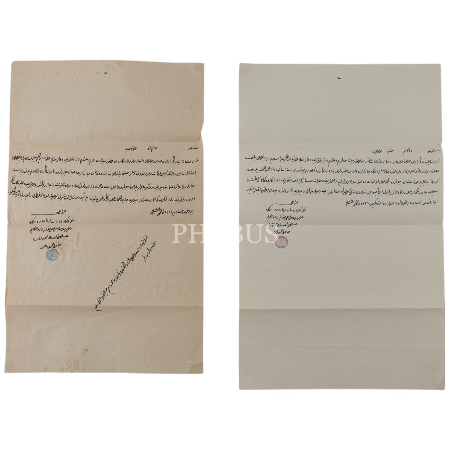 1327 ve 1329 tarihli 2 adet feraşet mektubu, kağıt ölçü: 22x35 ve 23x37 cm, 12x23 cm...