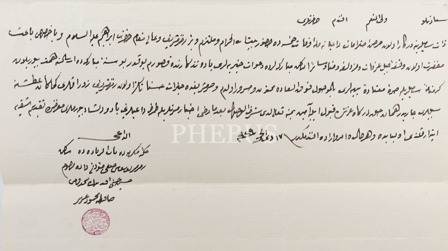 Mekke-i Mükerreme´deki Hafız Mahmud Aziz Bey´den Abdülkerim Cevdet Bey´in Eşi Fatma Hayriye Hanım´a gönderilen mektup.
