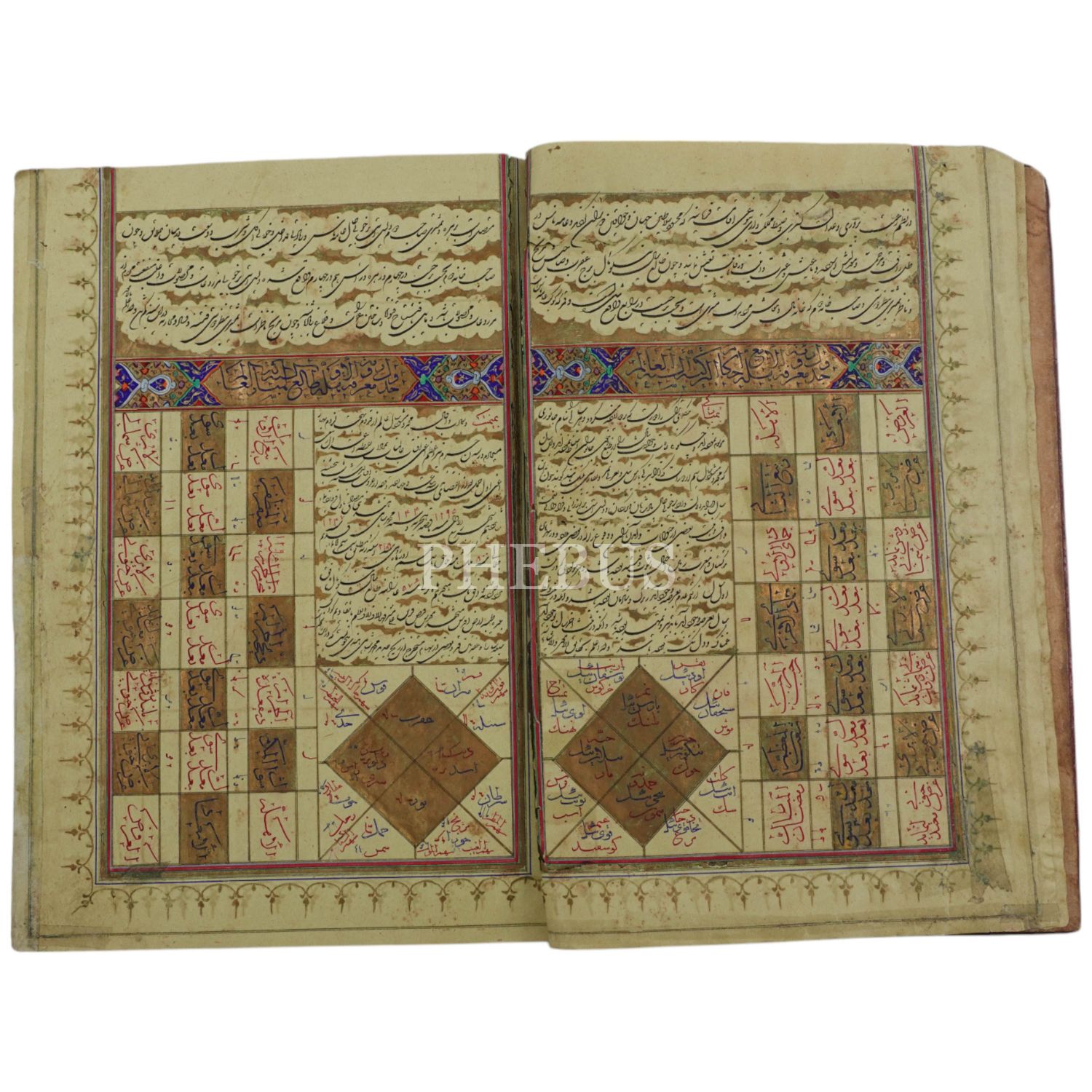 Deri dönem cildinde, metin kısmı beynessütur tezyinatlı; kırmızı, lapis ve siyah mürekkeple yazılı; kırmızı, yeşil, altın cetvelli ve tahrirlidir.
