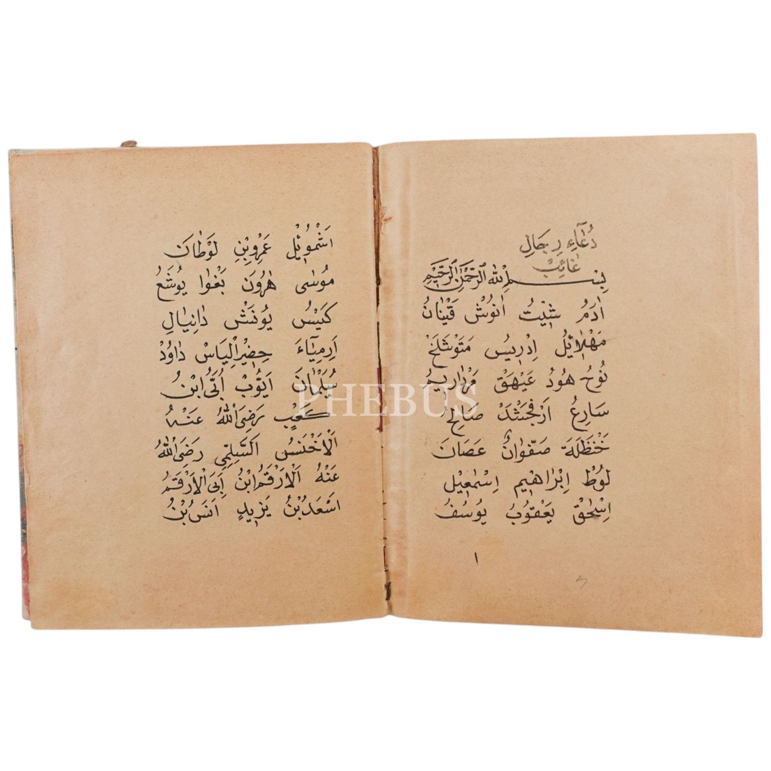 Peygamberlerin, Sahabilerin ve büyük şahsiyetlerin isimleriyle başlayan dua risalesi.