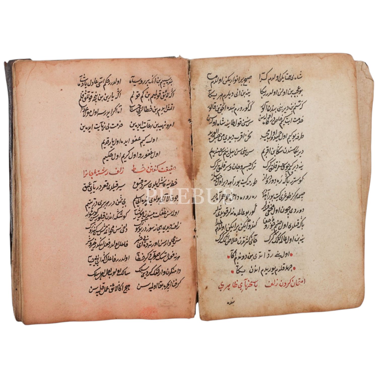 Deri dönem cildinde, şemseli ve mıklebli. Talik hattıyla yazılıdır, yer yer kırmızı mürekkep kullanılmıştır.