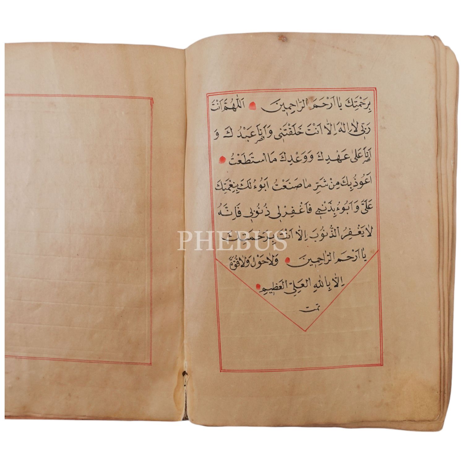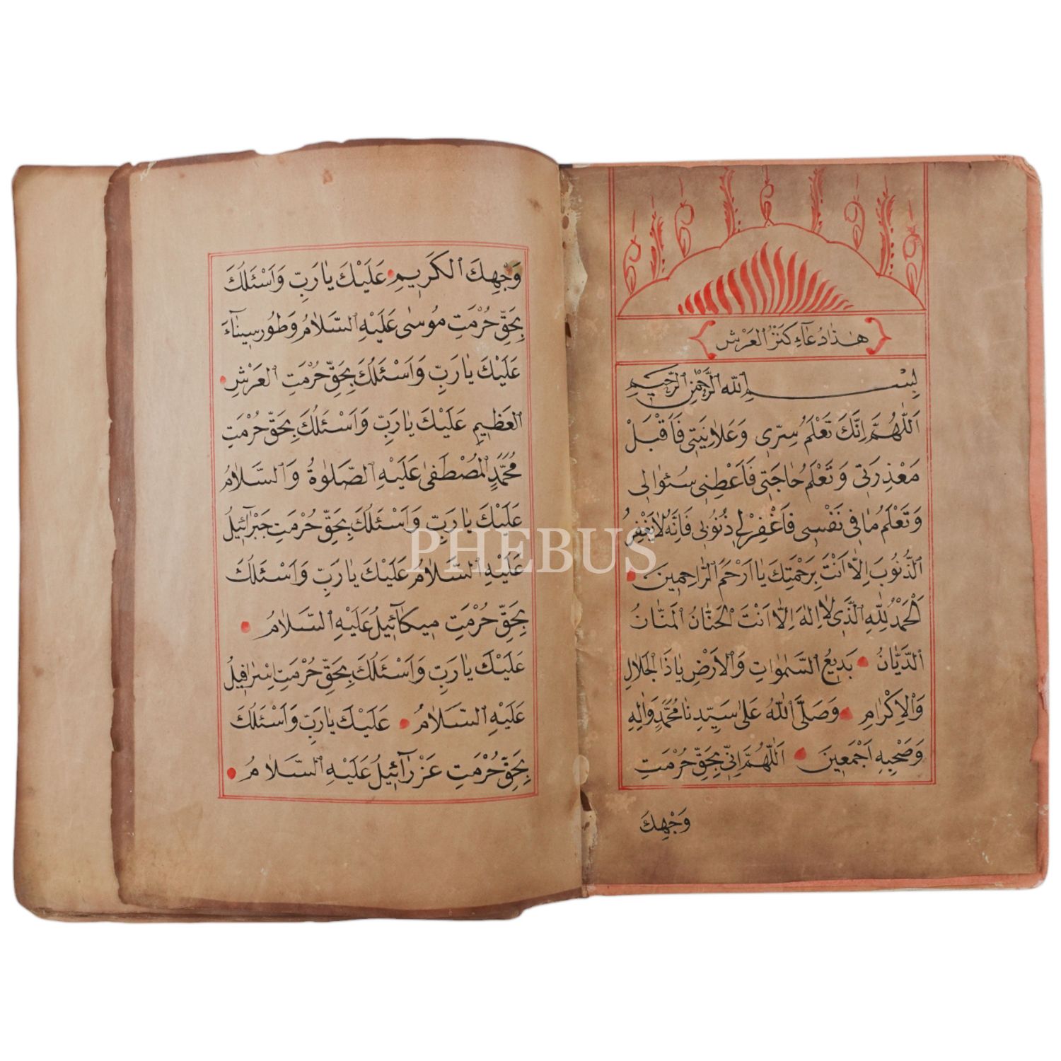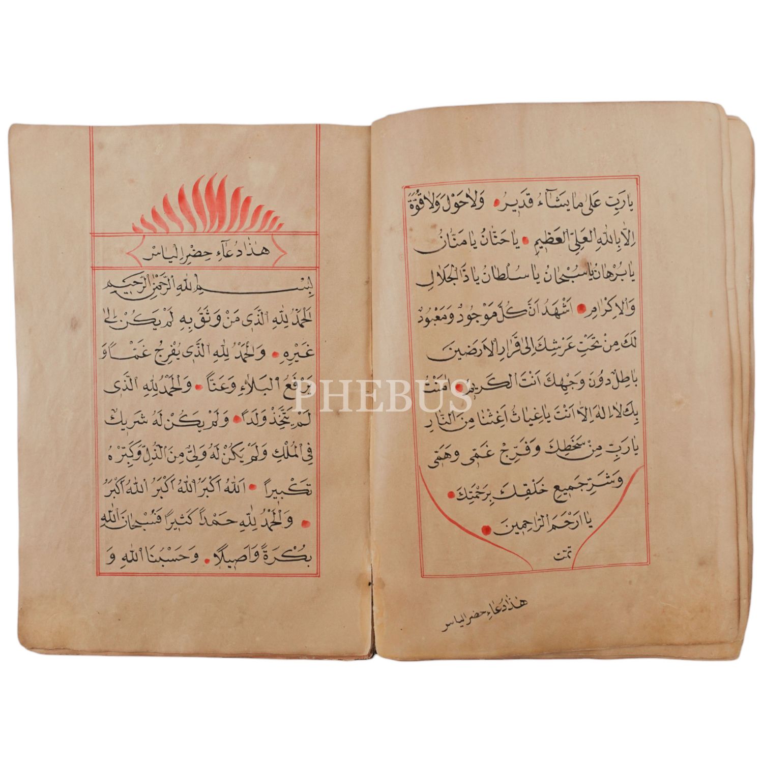 Serlevhalı ve kırmızı cetvelli. Kenzü'l-Arş, Hızır İlyas duası ve gönül çelme için dua içerir.