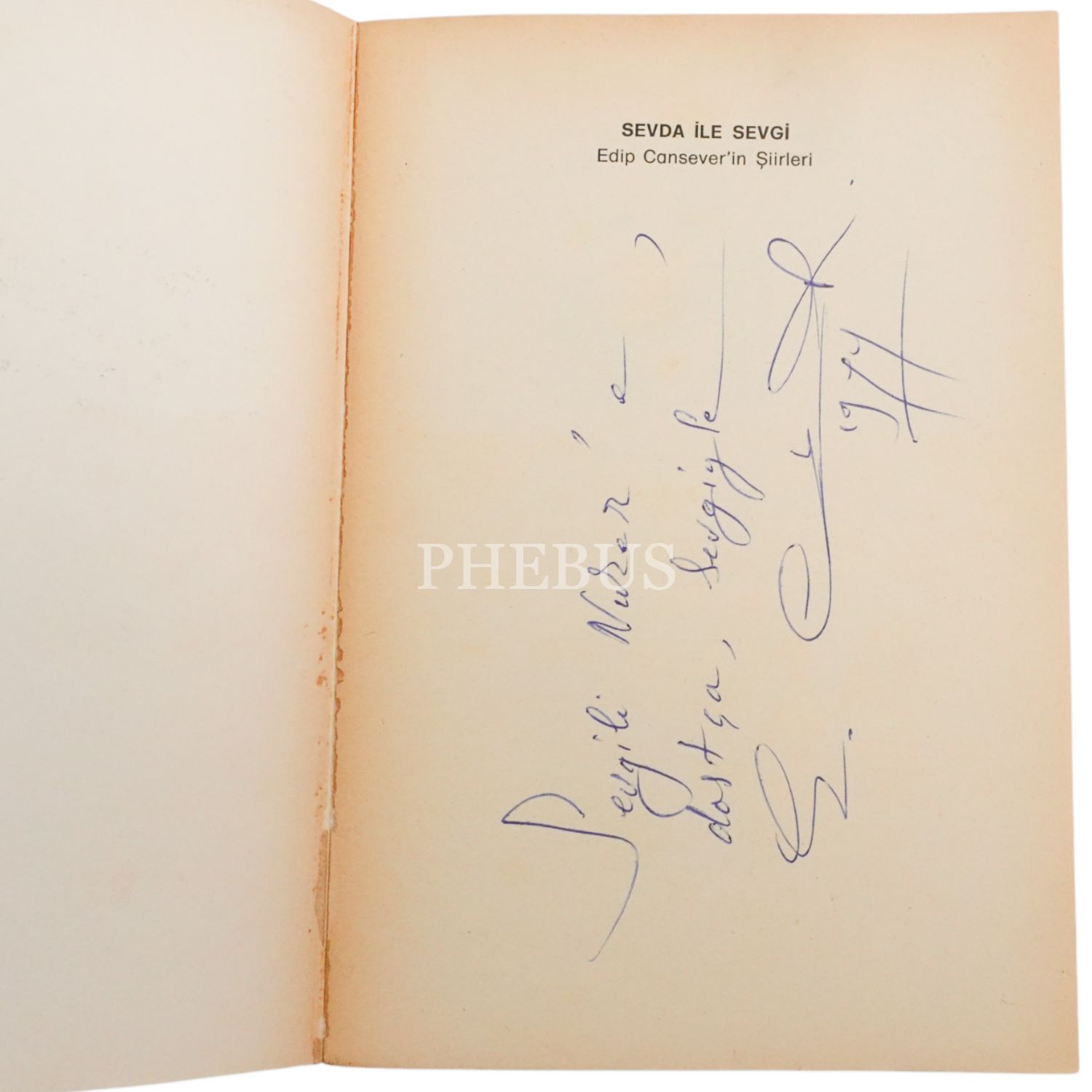 Edip Cansever´den; araştırmacı, yazar, şair ve yayıncı Nurer Uğurlu'ya "Sevgili Nurer´e dostça, sevgiyle" ithafıyla 1977 yılında imzalanmıştır.