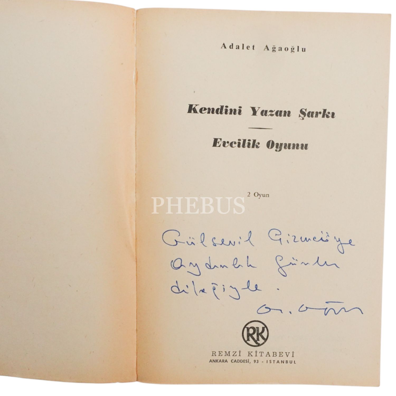 KENDİNİ YAZAN ŞARKI-EVCİLİK OYUNU, Adalet Ağaoğlu, 1977, Remzi Kitabevi, 166 sayfa, 13,5x20 cm.