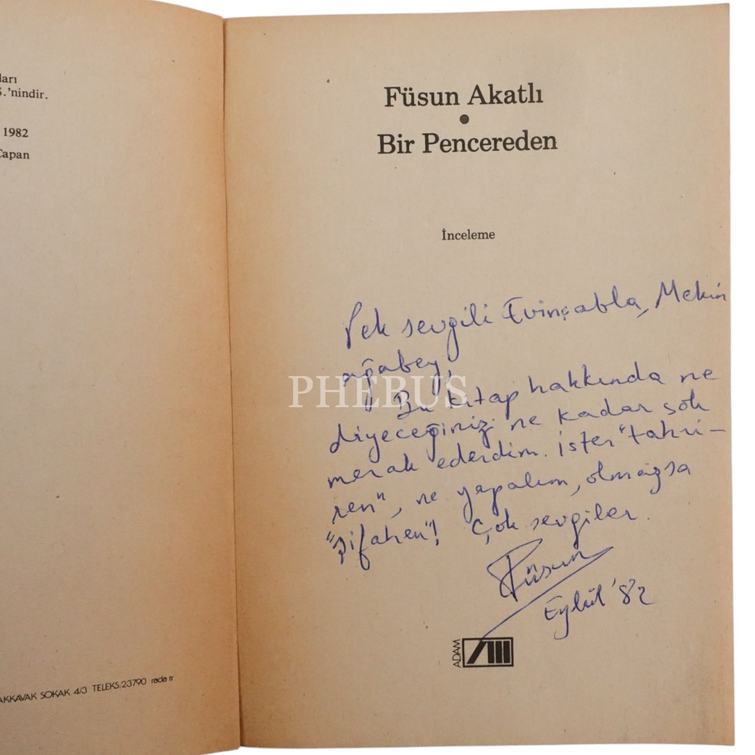 BİR PENCEREDEN, Füsun Akatlı, 1982, Adam Yayıncılık, 388 sayfa, 14x20cm...