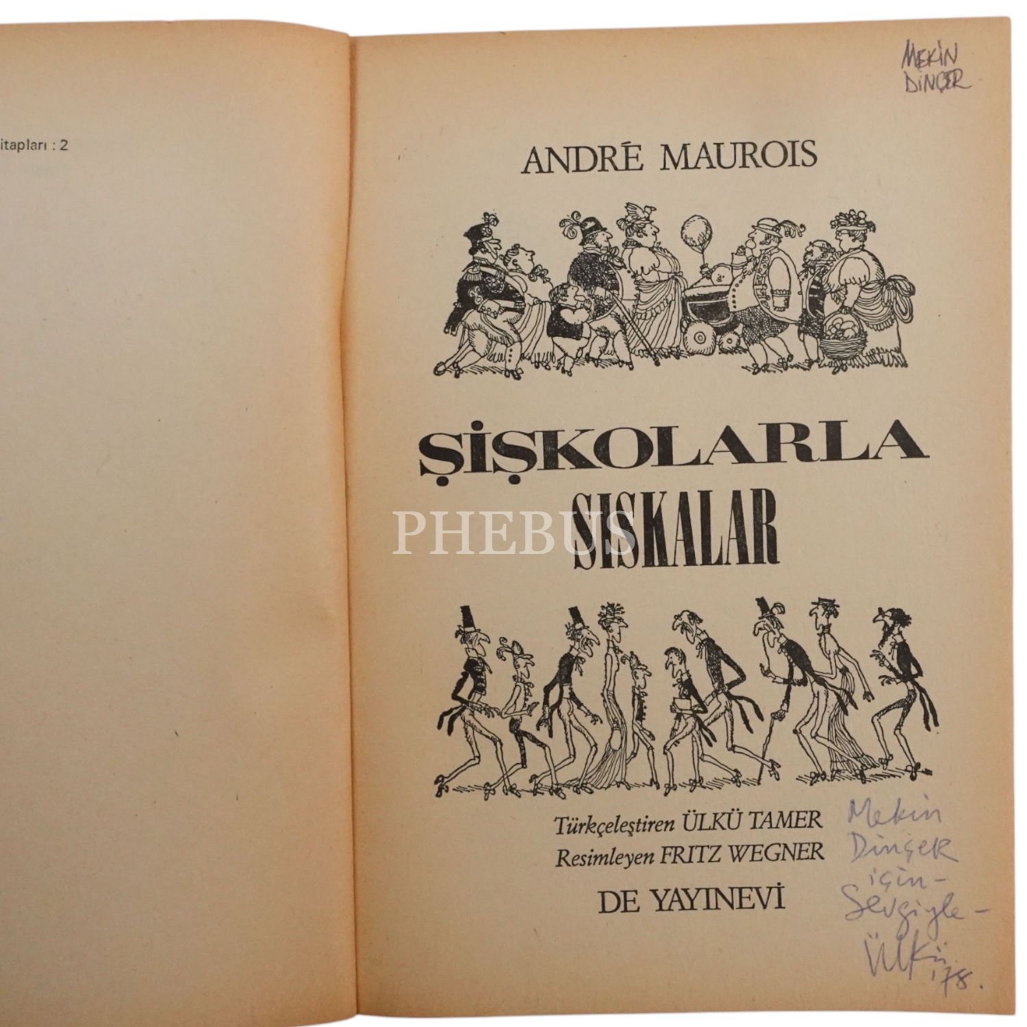 Académie Française üyesi yazar Andre Maurois´in çocuk kitabı Şişkolar ve Sıskalar´ın dilimize çevirisidir."Mekin Dinçer için Sevgiyle" ithafıyla 1978 tarihinde Ülkü Tamer tarafından imzalanmıştır.