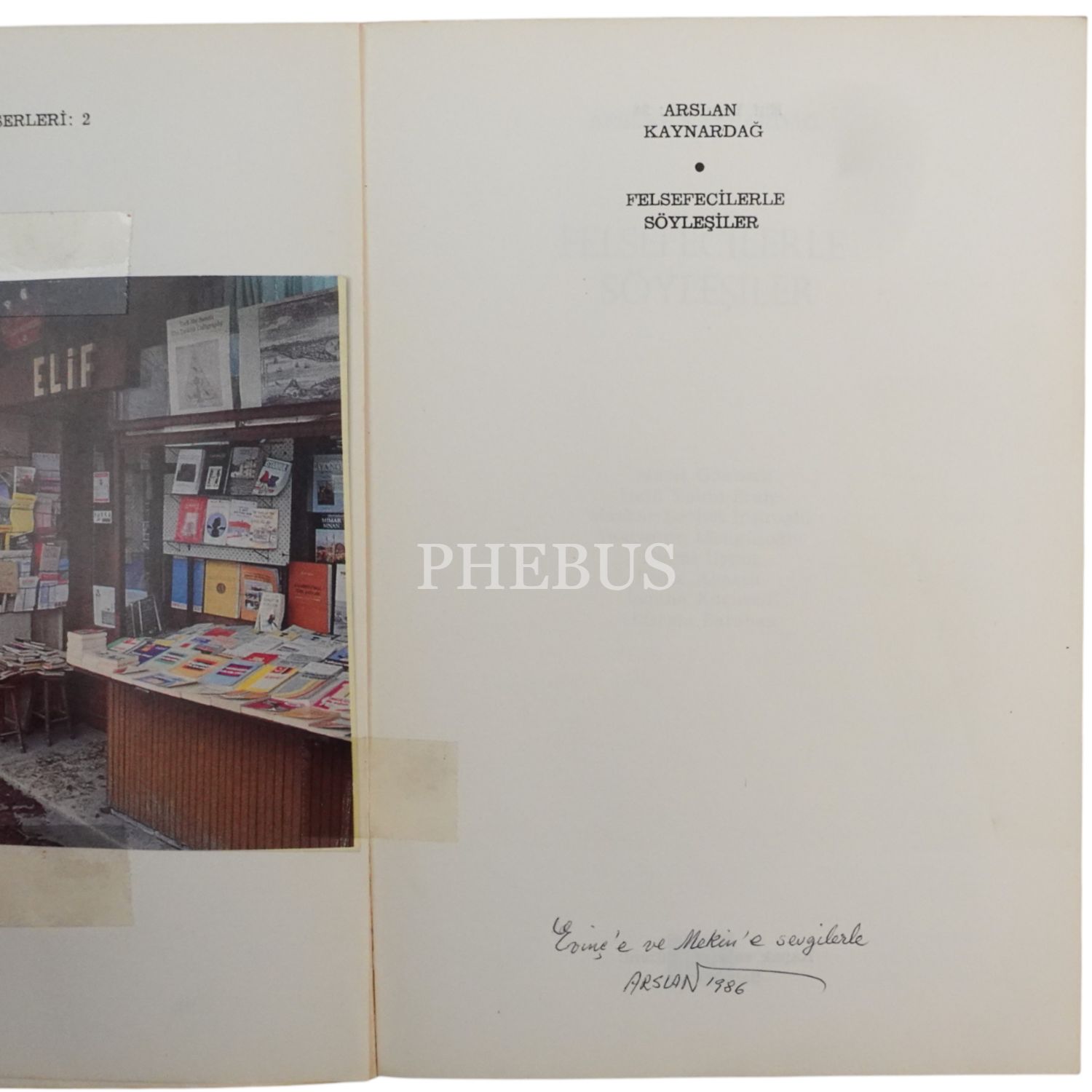 Felsefeci Arslan Kaynardağ´ın Macit Gökberk, İoanna Kuçuradi gibi muasırı meşhur meslektaşlarıyla yaptığı söyleşilşeri ihtiva eden eser, "Evinç ve Mekin´e sevgilerle" ithafıyla Nisan 1986 yılında imzalanmıştır.