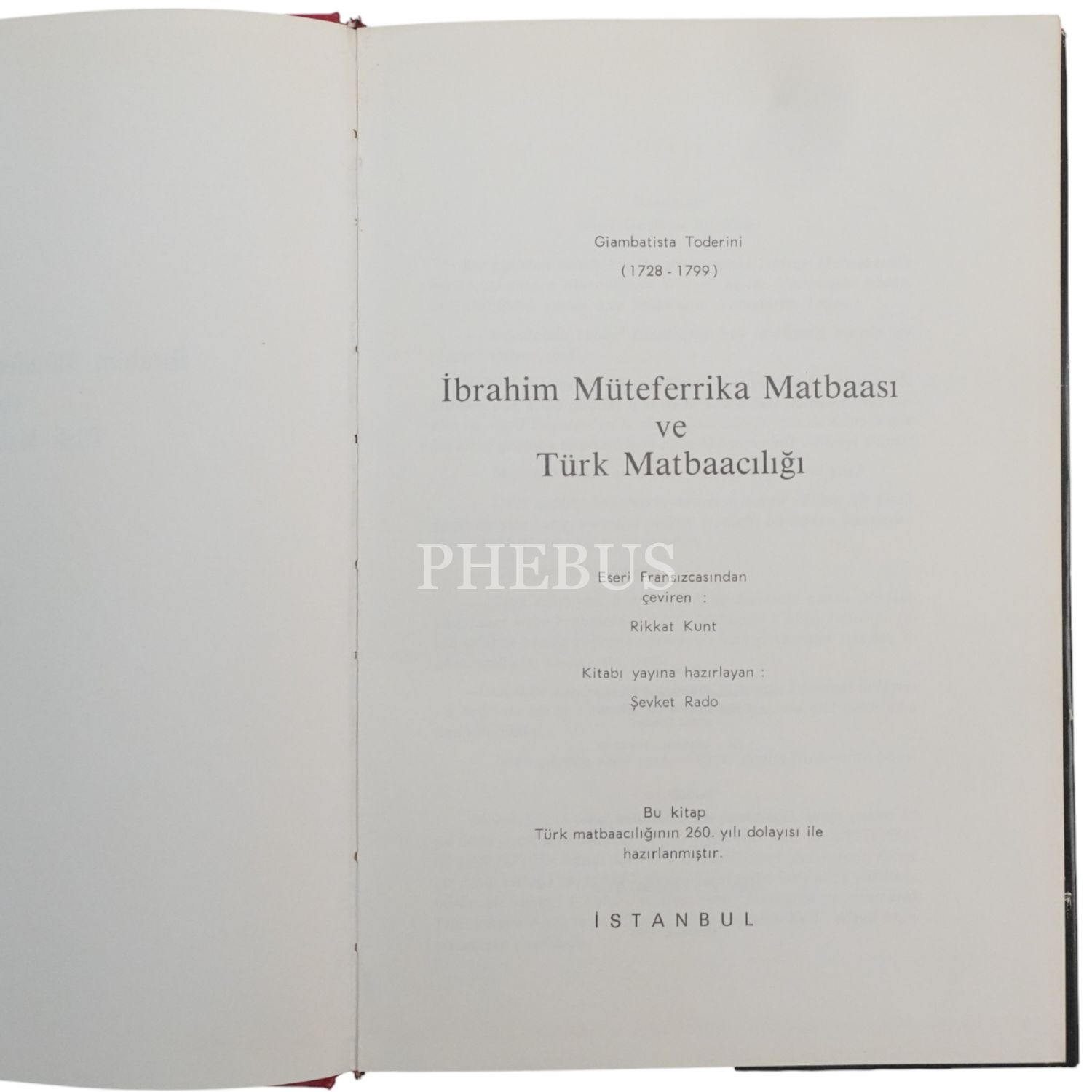 İlk Türk matbaacı İbrahim Müteferrika ile Türklerin matbaa ile olan ilişkisinin seyyah Toderini gözünden yansımalarının yer aldığı eser bir dönem Müteferrika Matbaası hakkında en tafsilatlı Türkçe bilgileri içermekteydi. Eser görsellerle zenginleştirilmiştir.