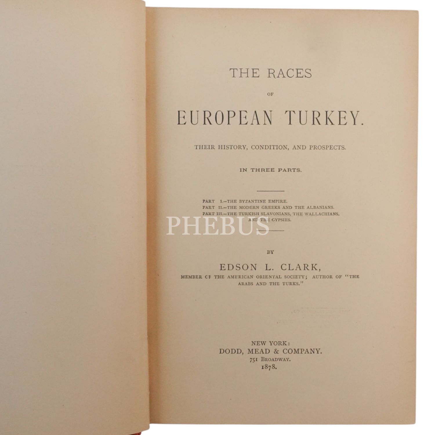 THE RACES OF EUROPEAN TURKEY, Edson L. Clark, 1878, New York, 532 sayfa, 15x21cm...