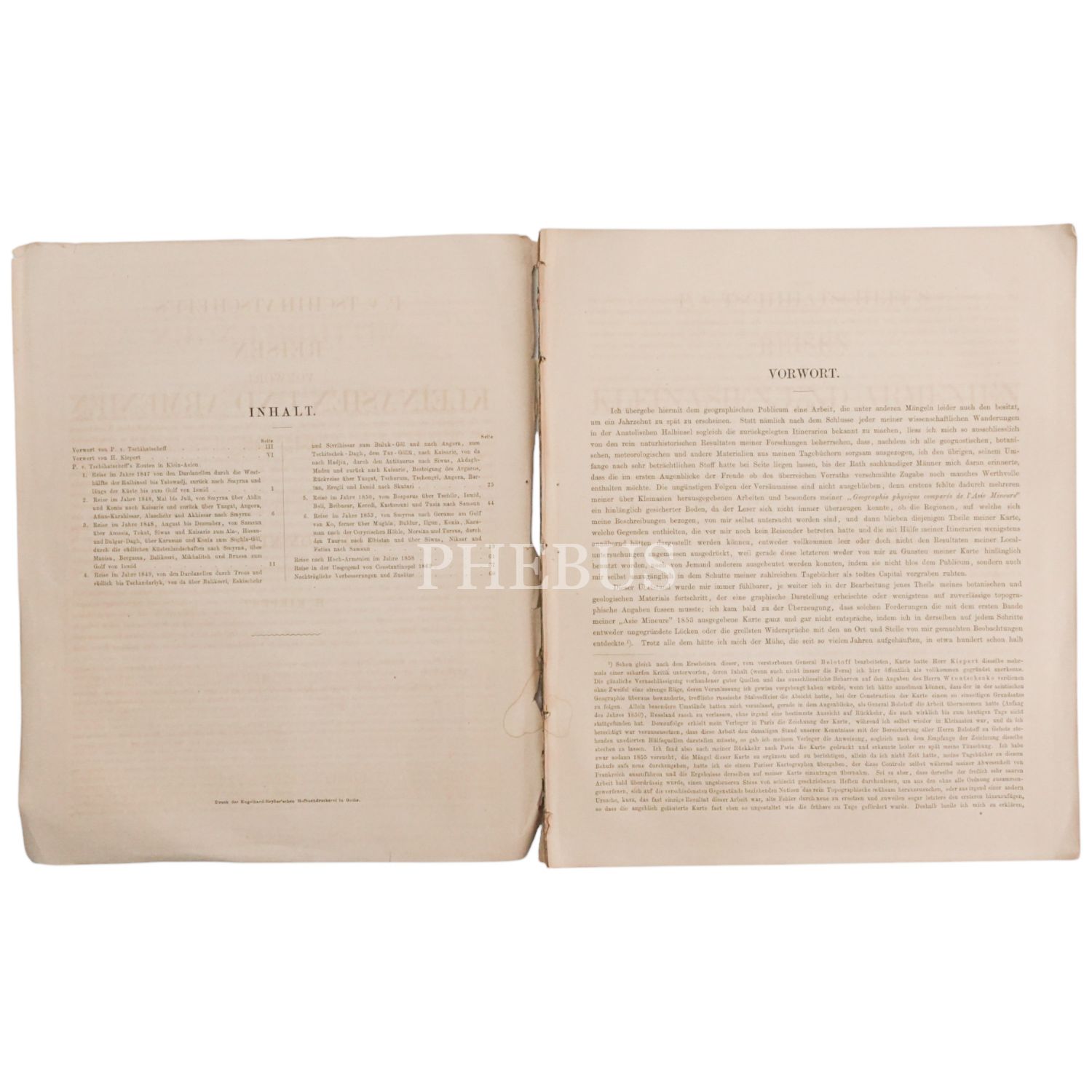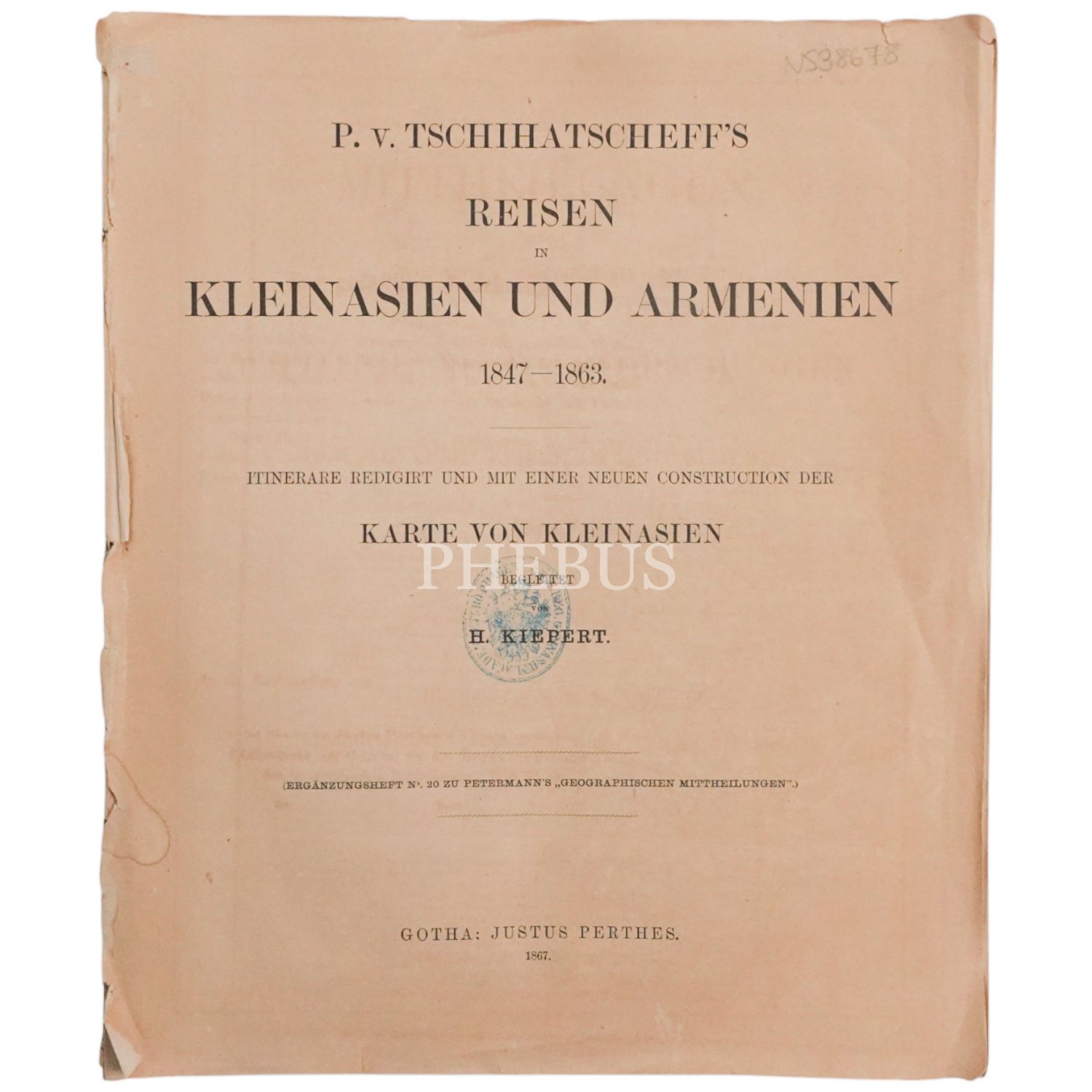 REISEN IN KLEINASIEN UND ARMENIEN 1847-1863, P. v. Tschihatscheff, 1867, Gotha, 68 sayfa, 22x27cm...