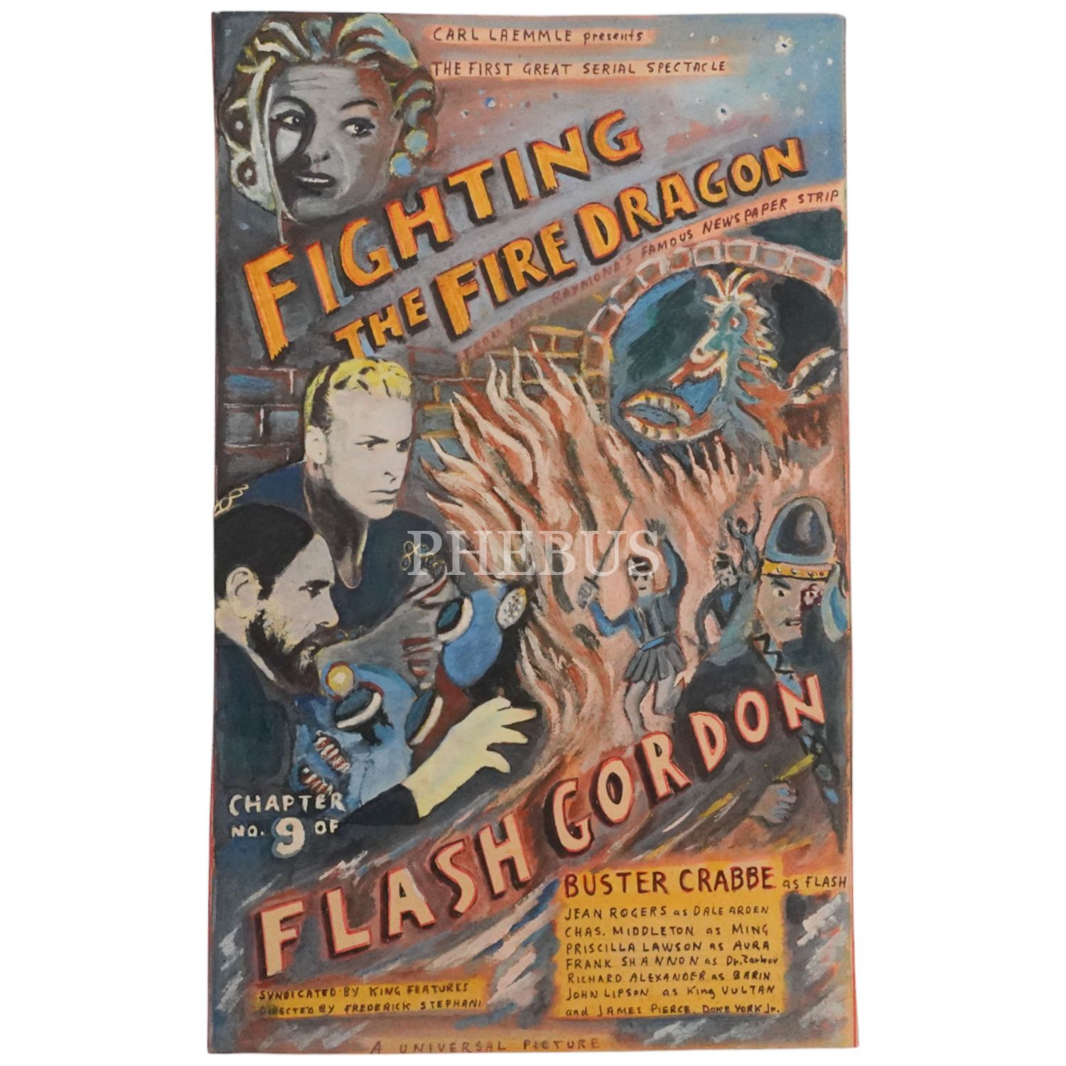 1936 yılında sahneye konulan "FLASH GORDON - FIGHTING THE FIRE DRAGON" filmi için guaj boya ve kolaj tekniğiyle hazırlanmış orijinal el çizimi afiş, 27x45 cm...