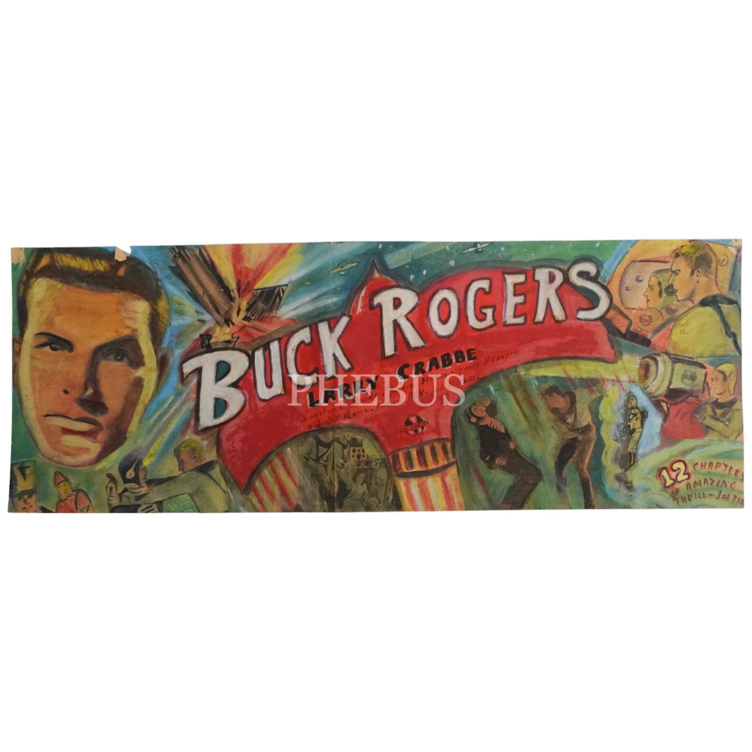 Philip Francis Nowlan´ın yarattığı çizgi roman karakteri BUCK ROGERS´ın sinema uyarlaması için guaj boya ve kolaj tekniğiyle hazırlanmış orijinal el çizimi afiş, 62x23 cm...
