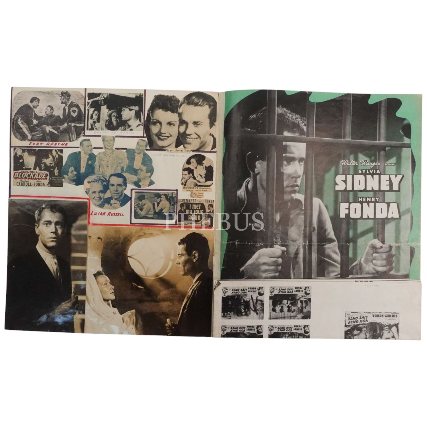 Henry Fonda´nın başrolünde olduğu "You Only Live Once", "Drums along the Mohawk" gibi filmlerden seçilmiş fotoğraflarla hazırlanmış kolaj albümü, 34x37 cm...