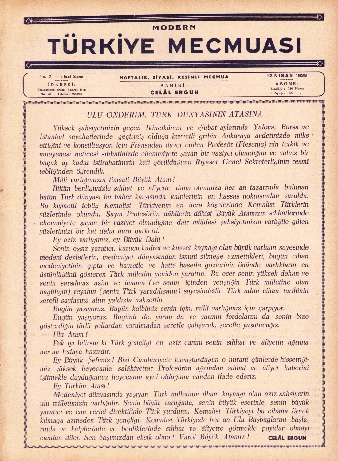 Modern Türkiye Mecmuası, Matbaa-i Ebuzziya, 1938, Atatürk kapaklı