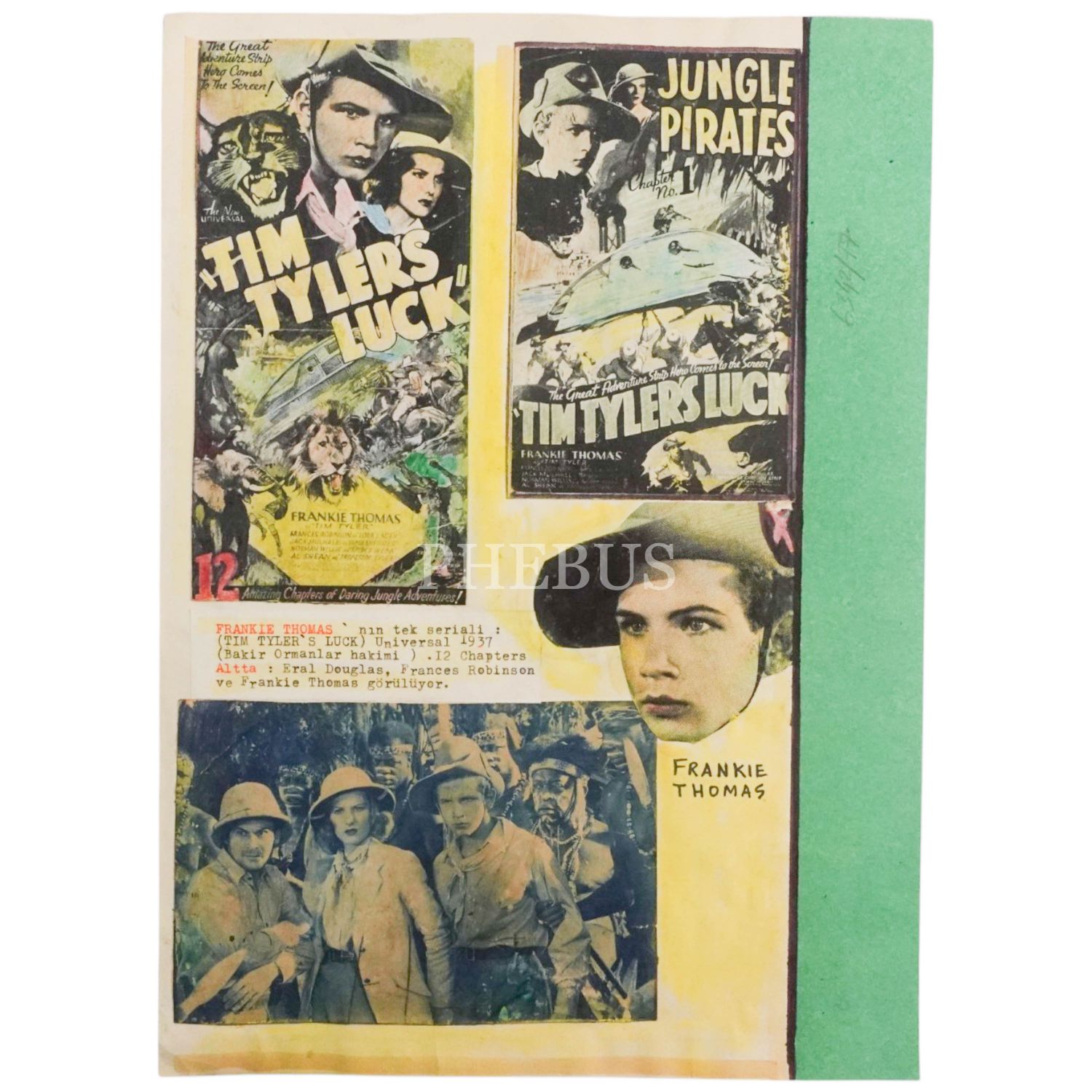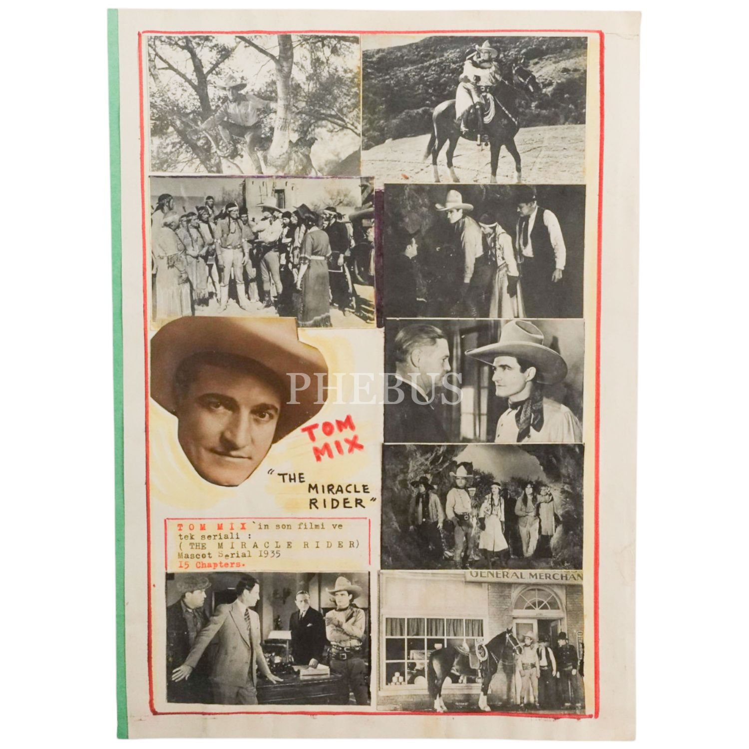 Tom Mix ve Frankie Thomas´ın sahnelenen filmelerinden görüntüler, filmlerin afişleri ve sanatçıların portre fotoğraflarının yer aldığı sayfa, 24x33 cm...
