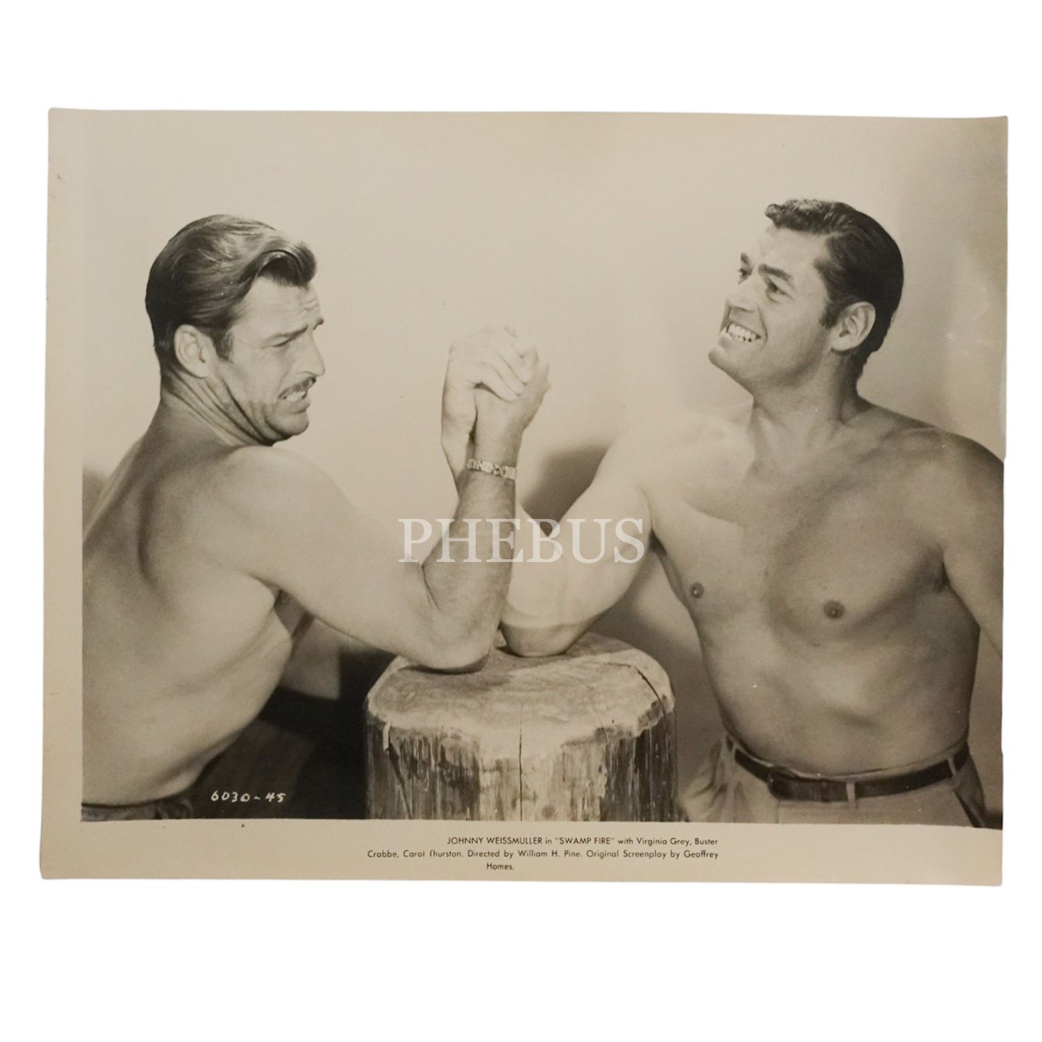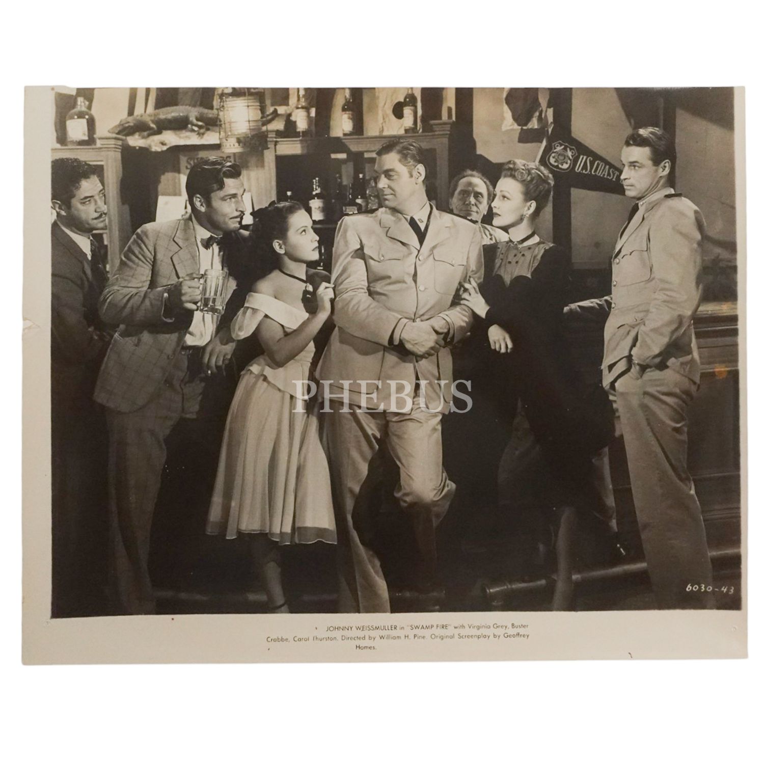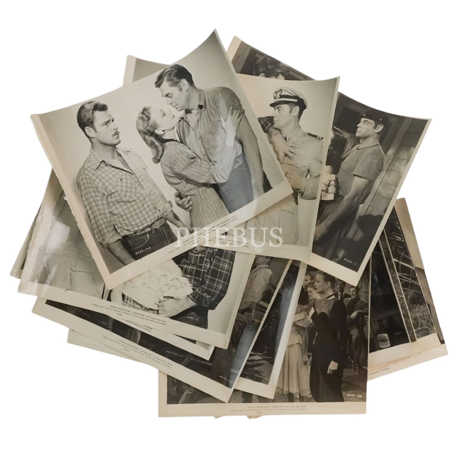 John Weissmuller´in "Swamp Fire" filminde diğer oyuncularla olan görüntülerinden oluşan 13 adet fotoğraf. 20x25 cm...