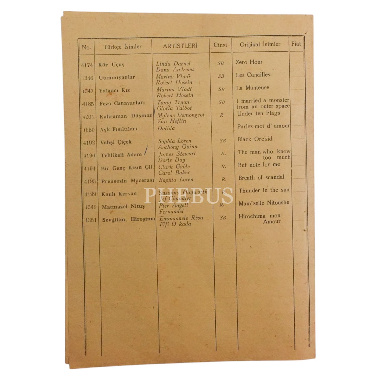 Fitaş Filmcilik Türk Anonim Şirketi, 1962 tarihli renkli sinemascop siyah beyaz filmlerin broşürü, 20x24 cm...