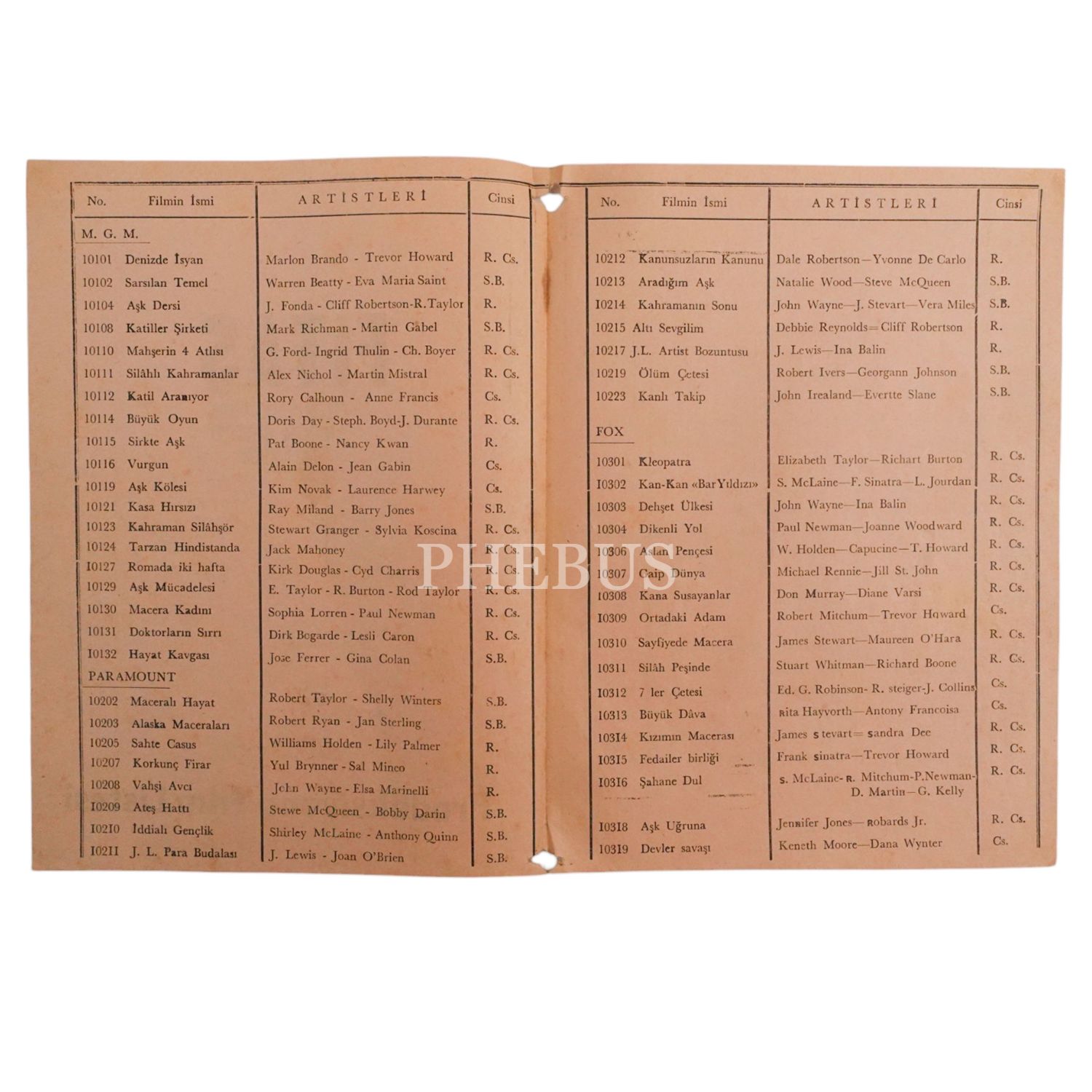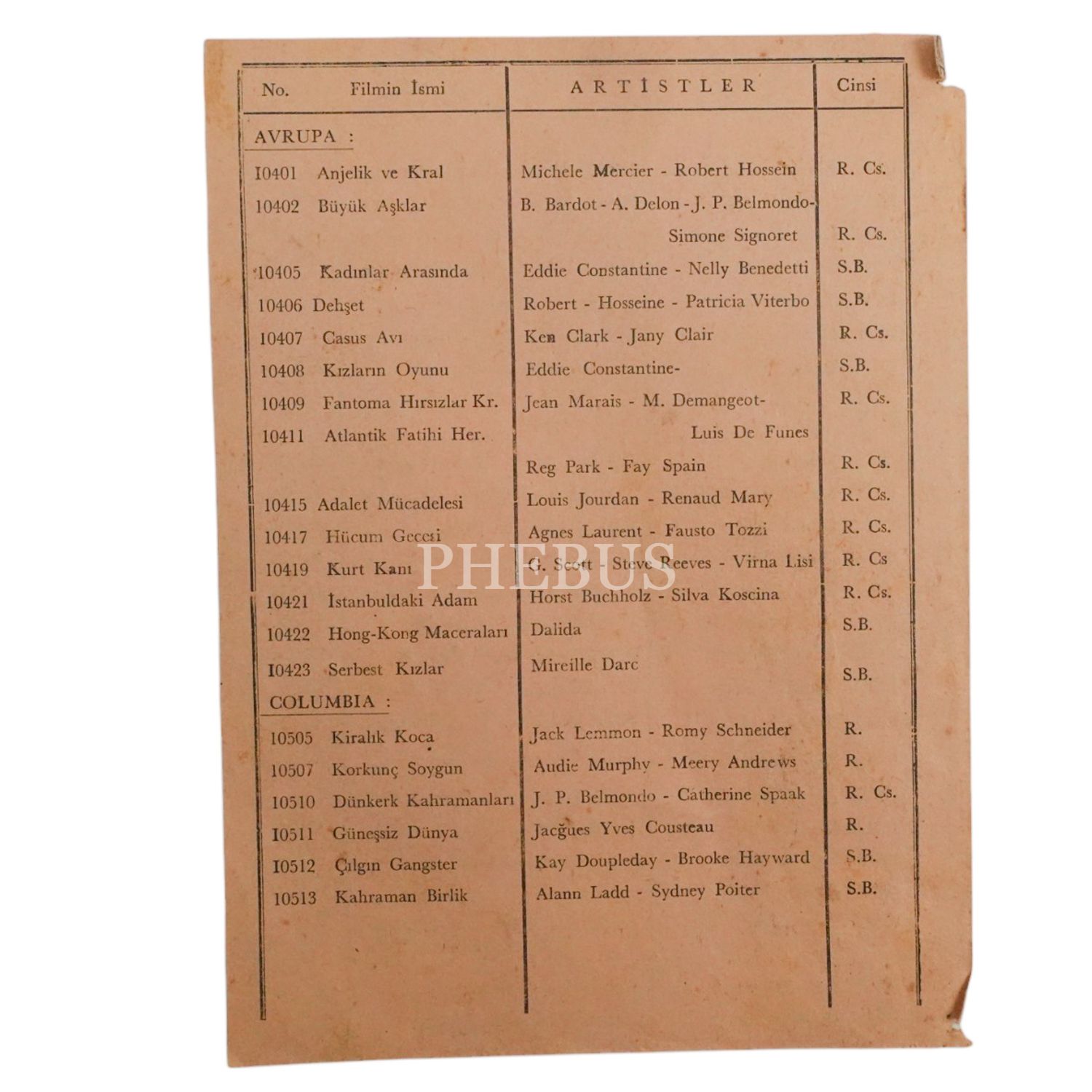 Fitaş Filmcilik Türk Anonim Şirketi, 1965-66 yıllarına ait, renkli sinemascop siyah beyaz filmlerin broşürü, 20x24 cm...