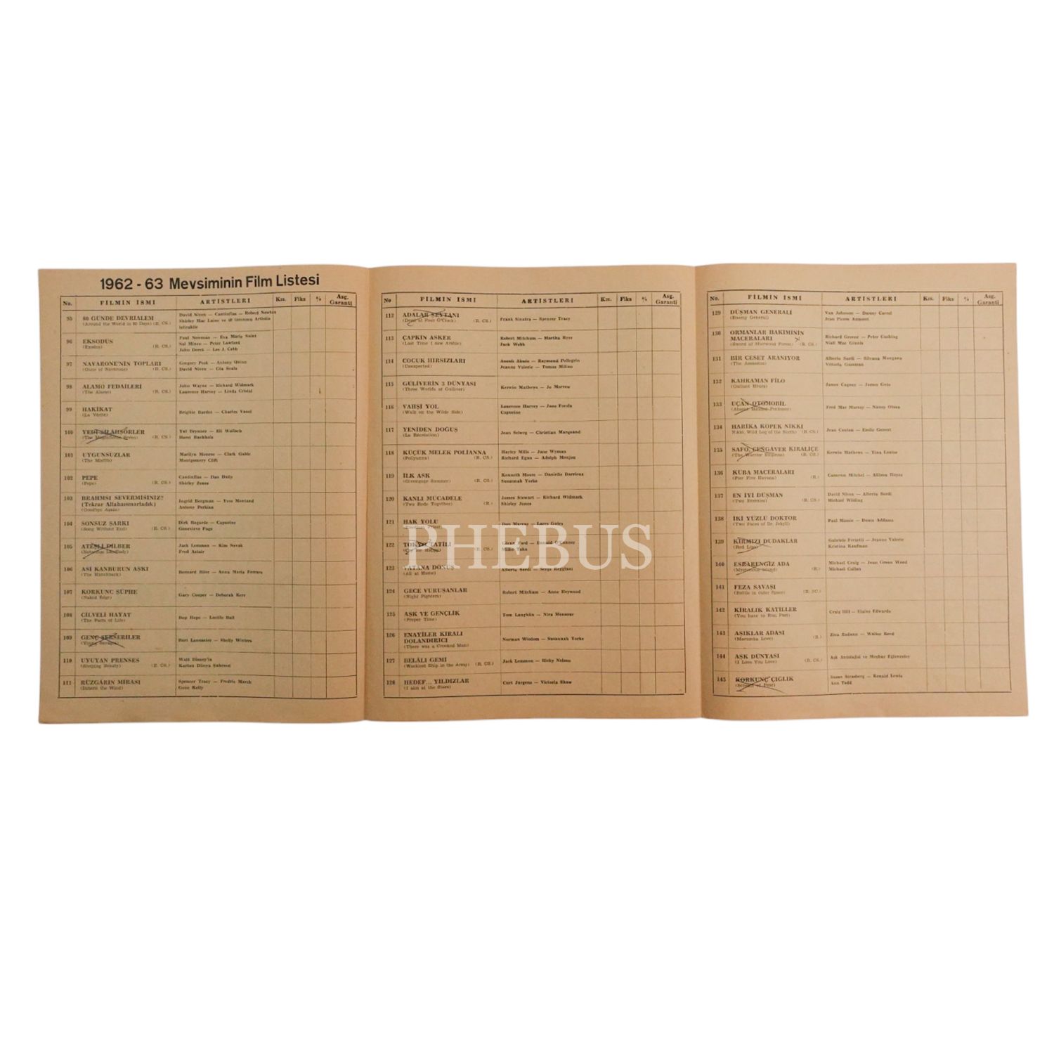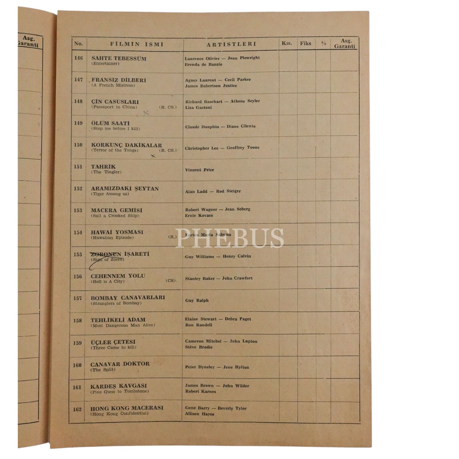Lâle Film´in 1962-63 yıllarına ait prodüksiyon listesi, 22x30 cm...
