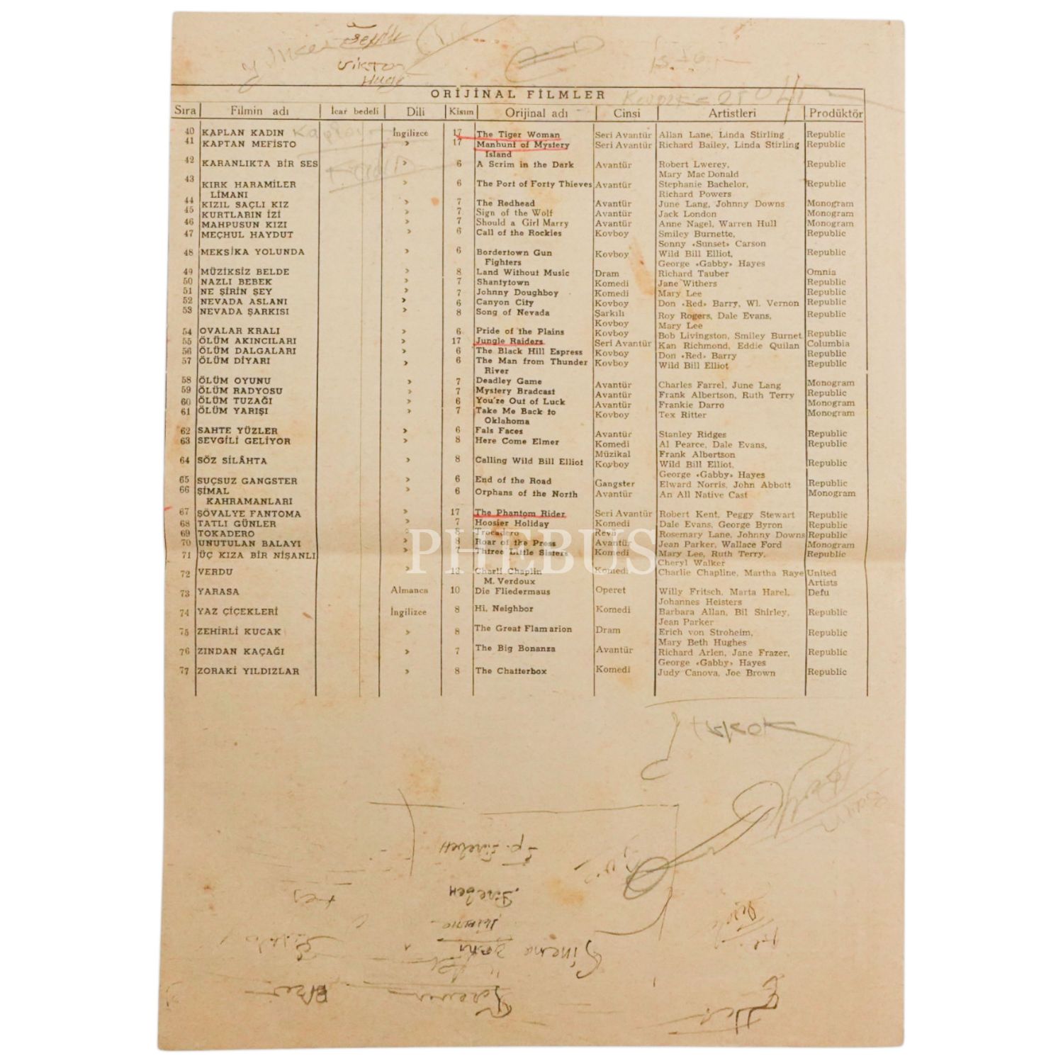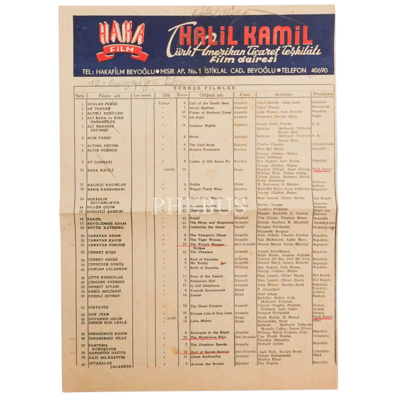 (Halil Kamil) Haka Filmcilik´e ait 2 adet prodüksiyon listesi, 22x30 cm...