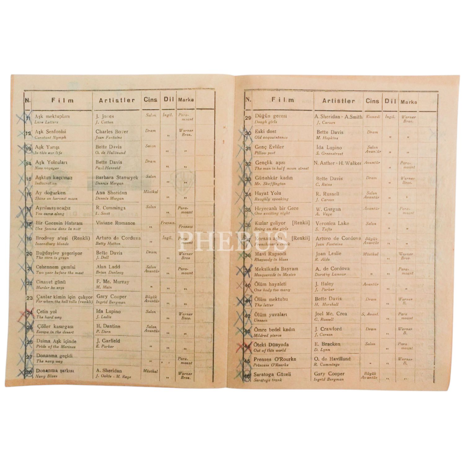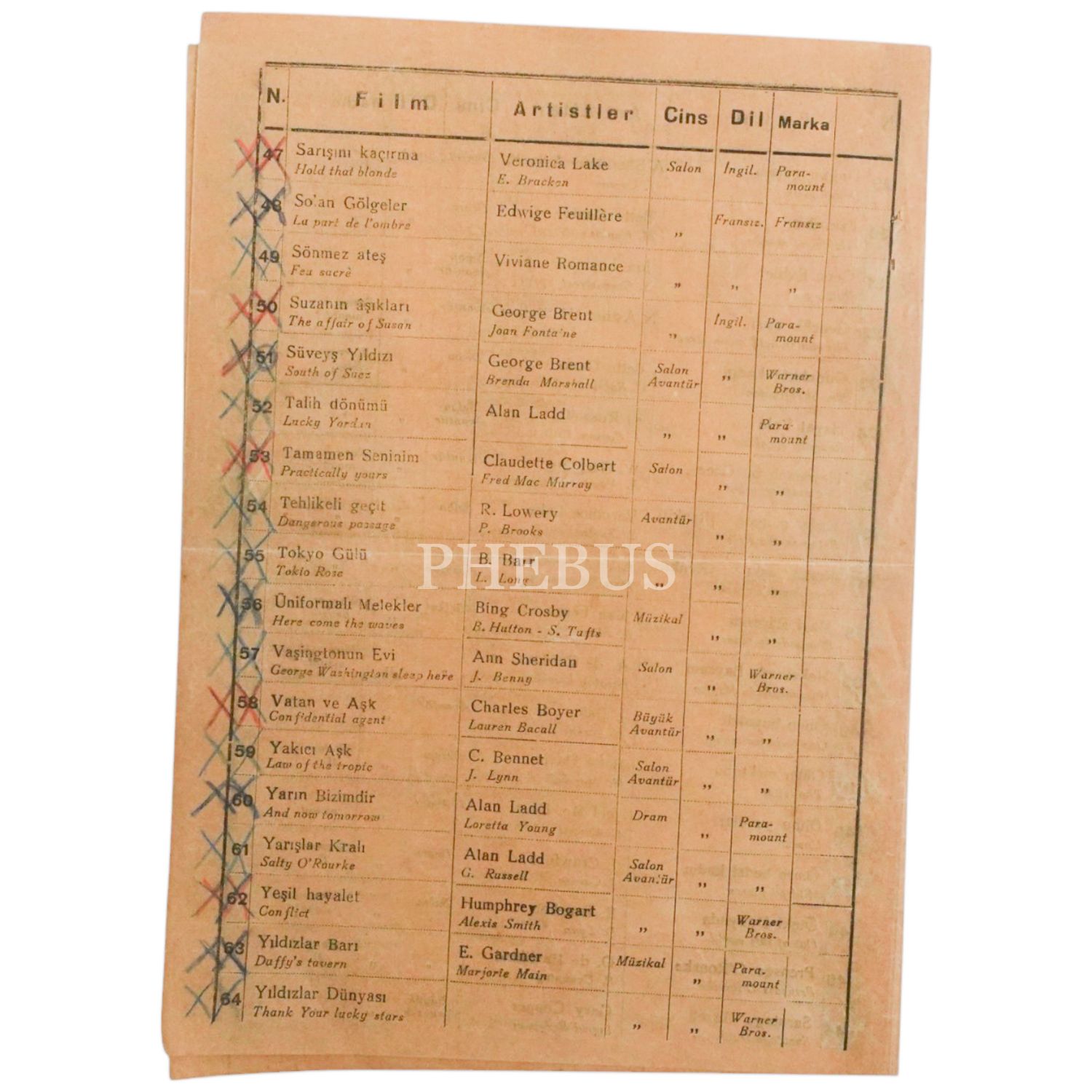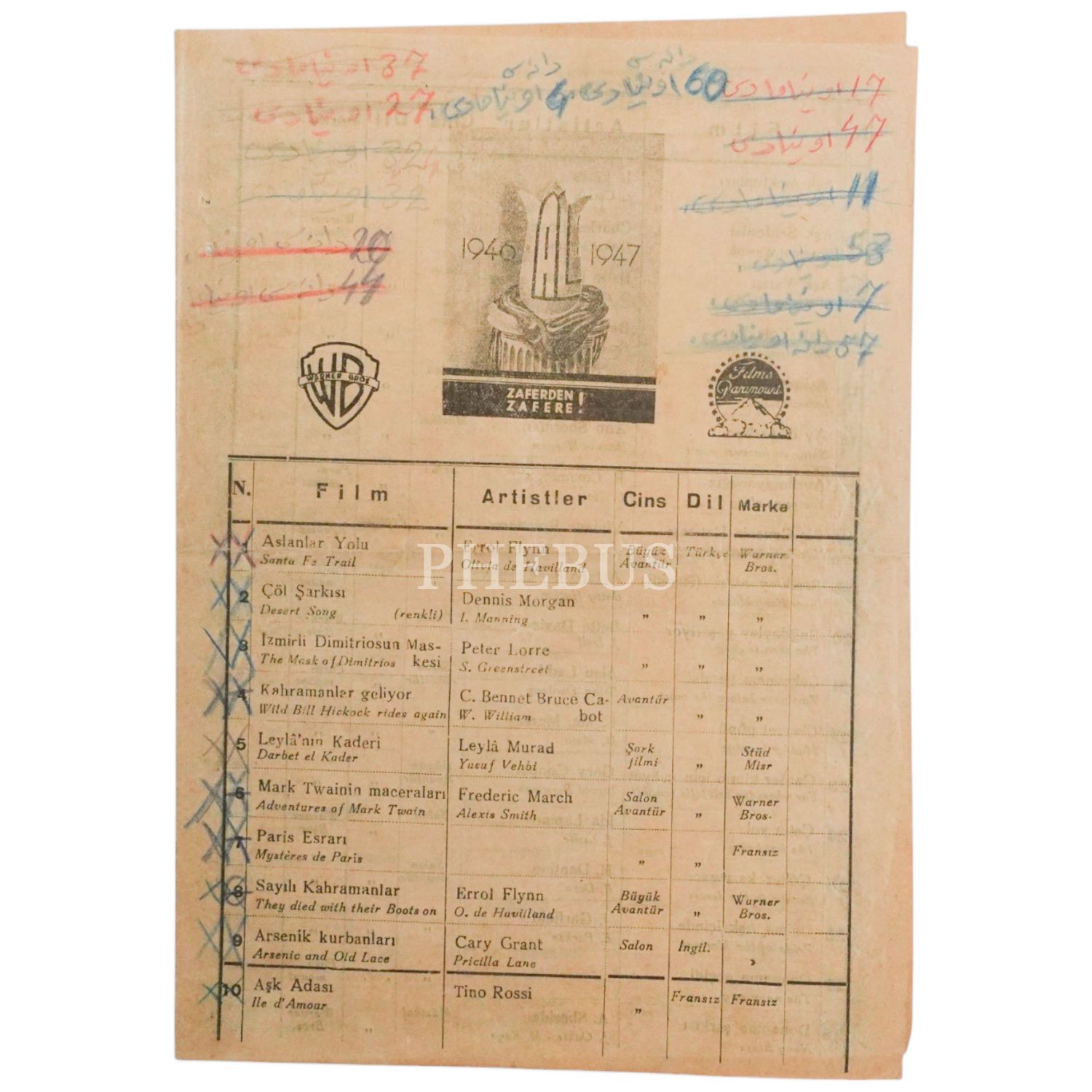 Lâle Film´in 1946-47 yıllarına ait prodüksiyon listesi, 17x24 cm...