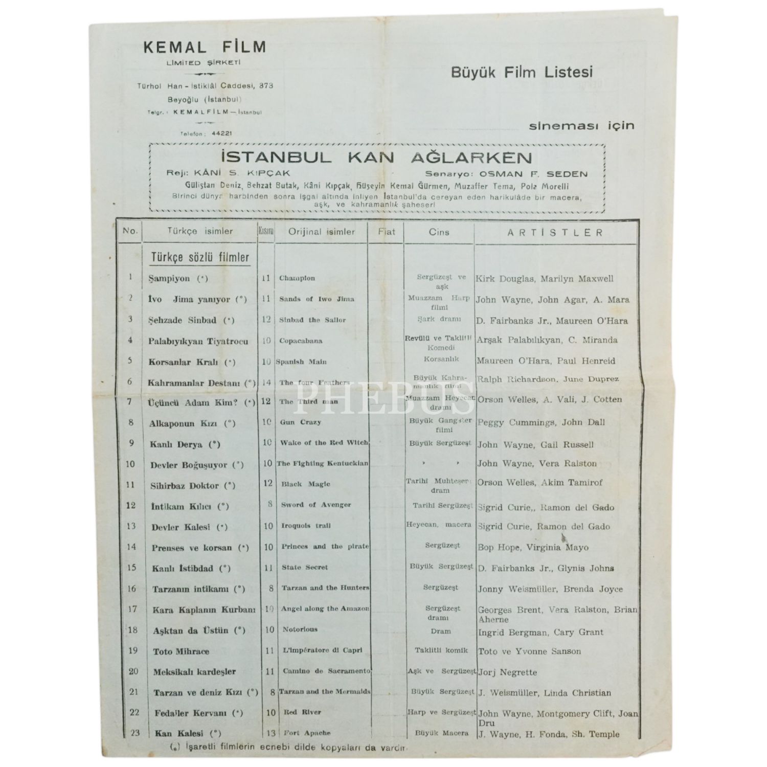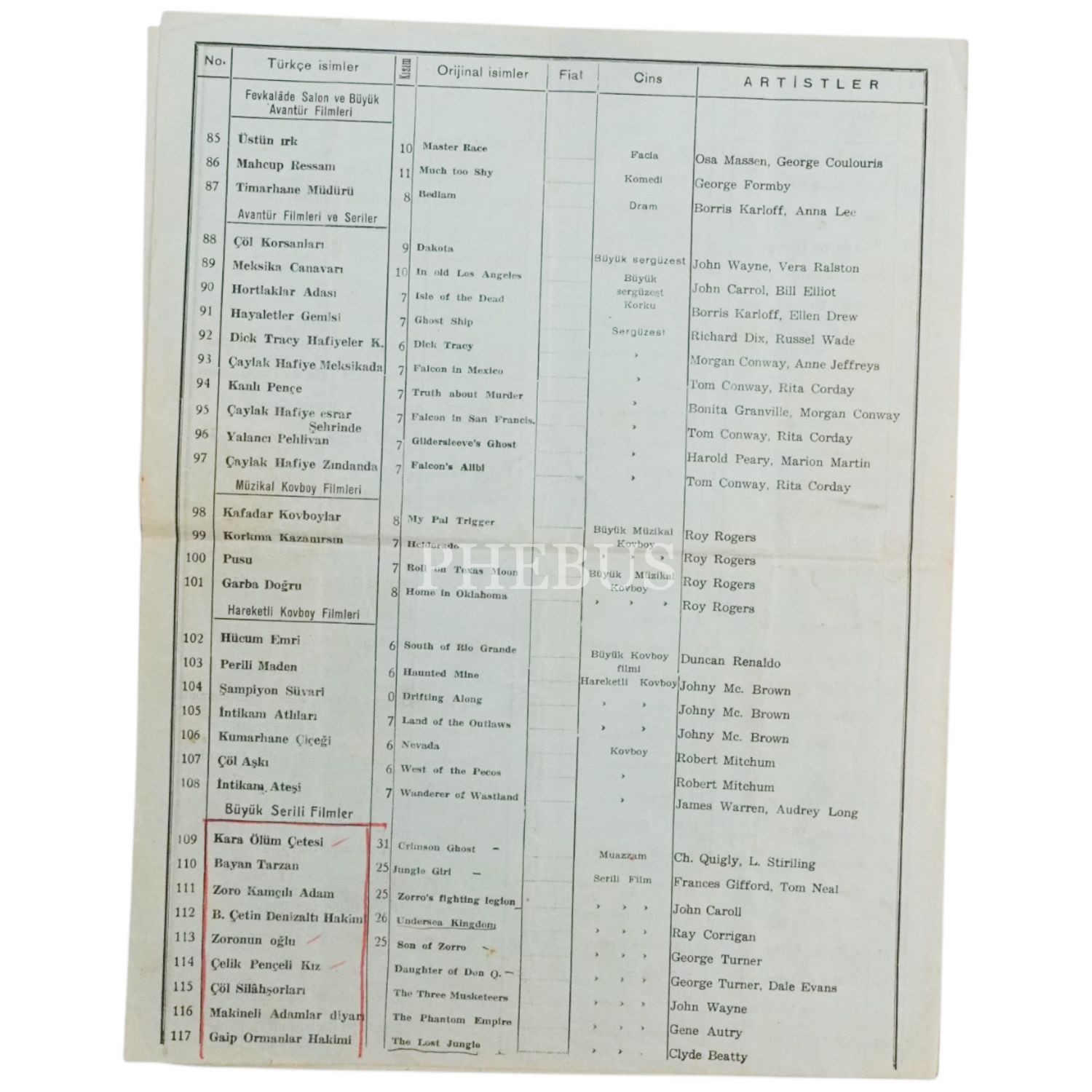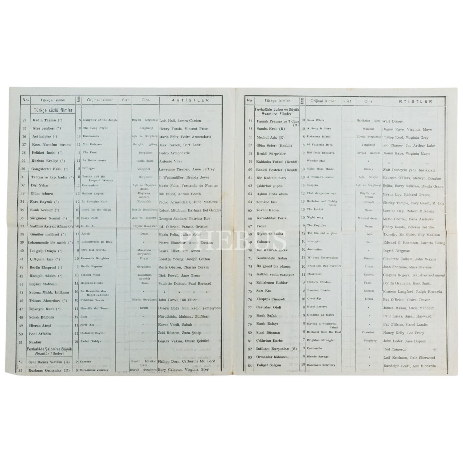 Kemal Film´e ait Büyük Film Listesi, 23x29 cm...