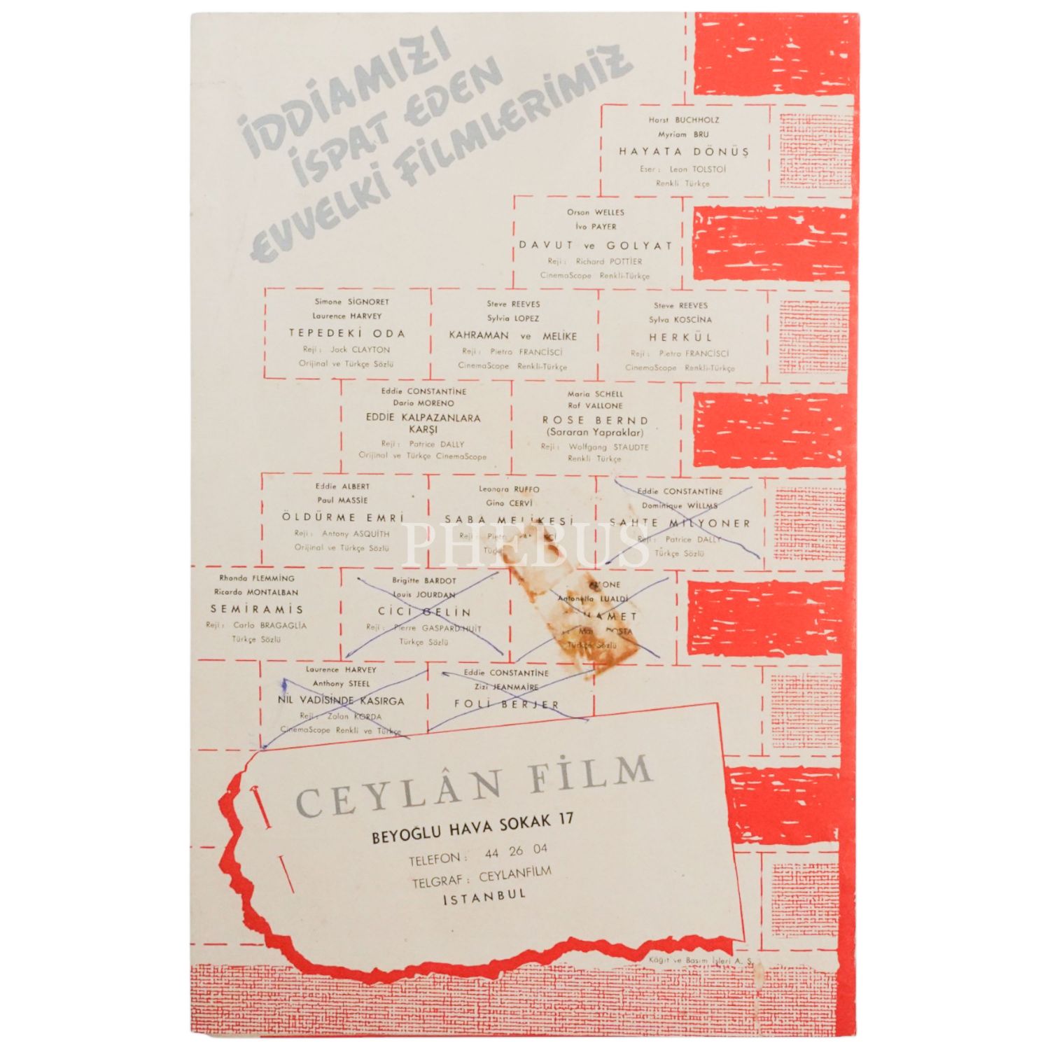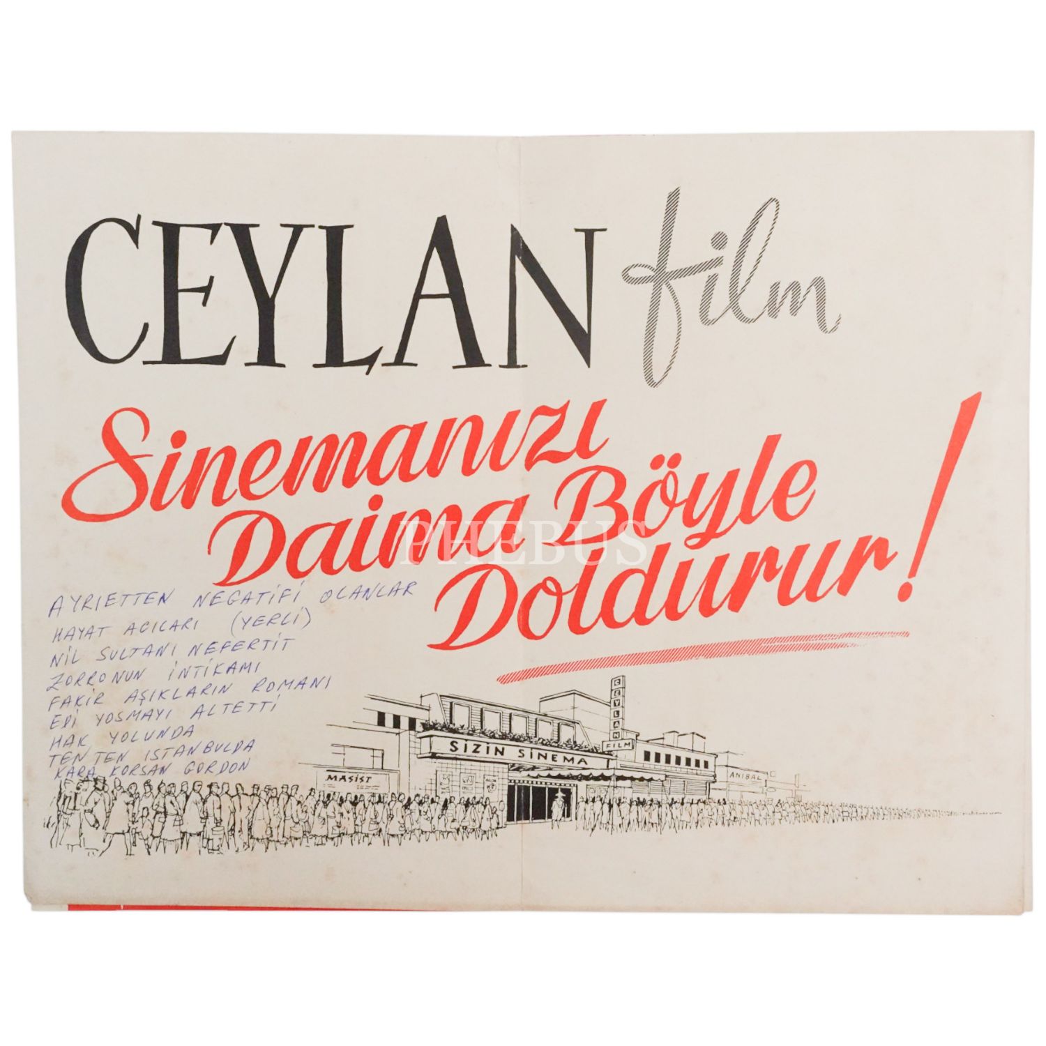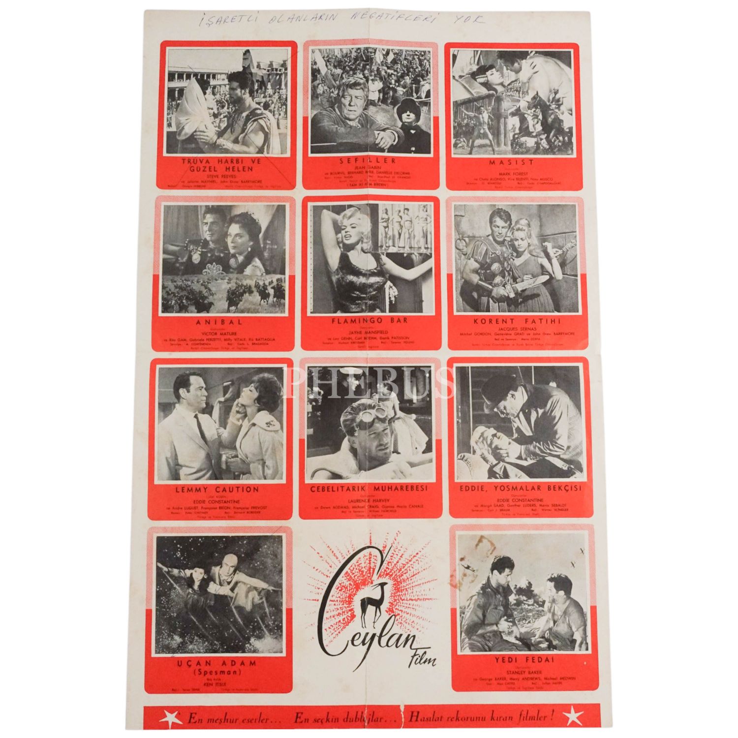 Ceylan Film´e ait 1962 tarihli film listesi, 21x31 cm...