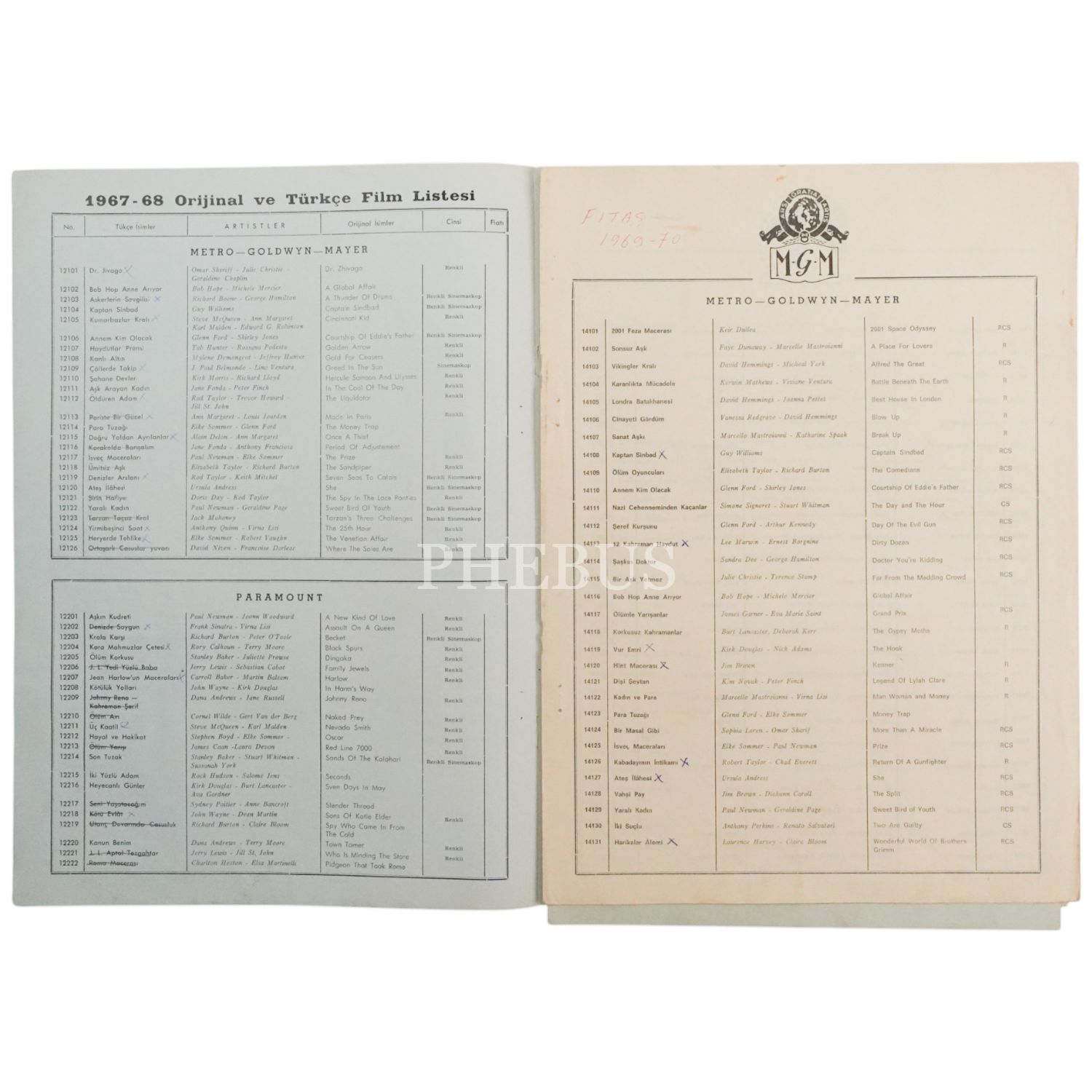 Fitaş Filmcilik´in 1969-70 yıllarına ait prodüksiyon kataloğu, 25x32 cm...