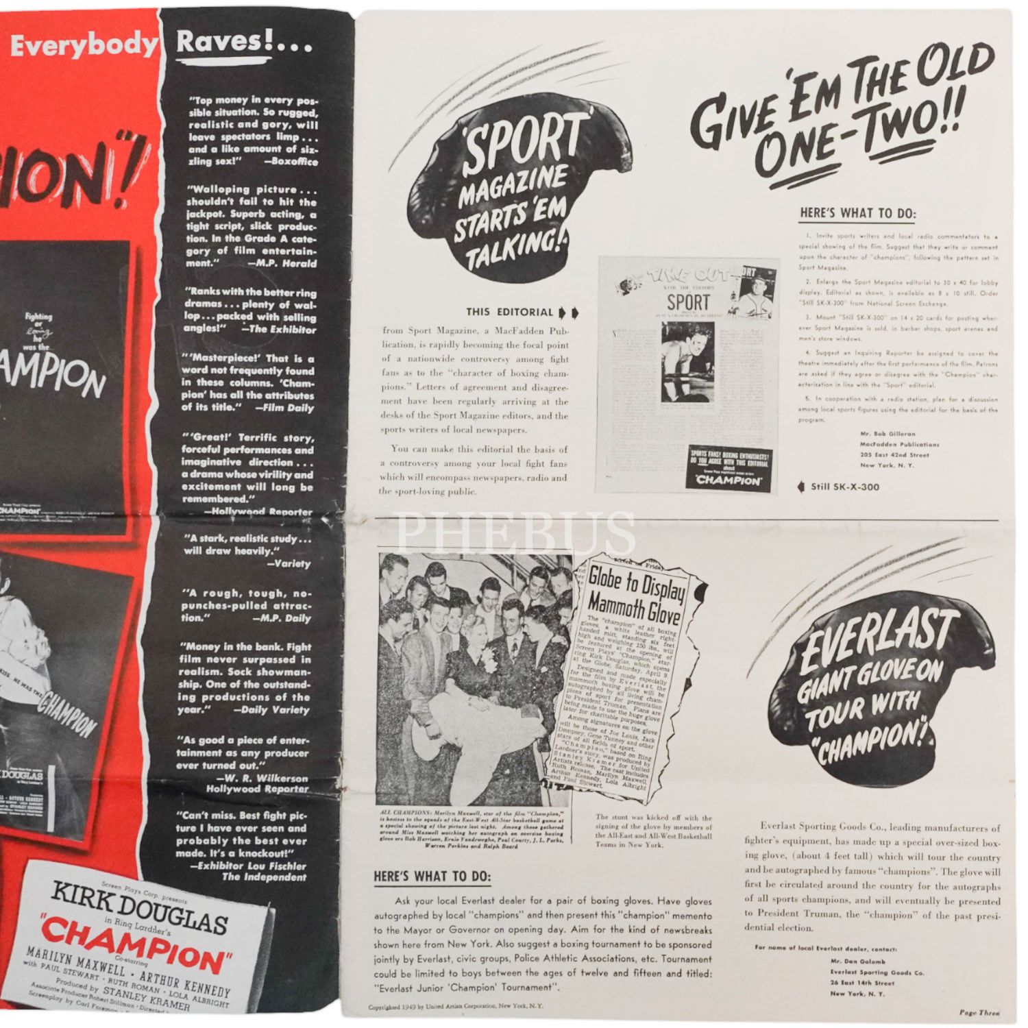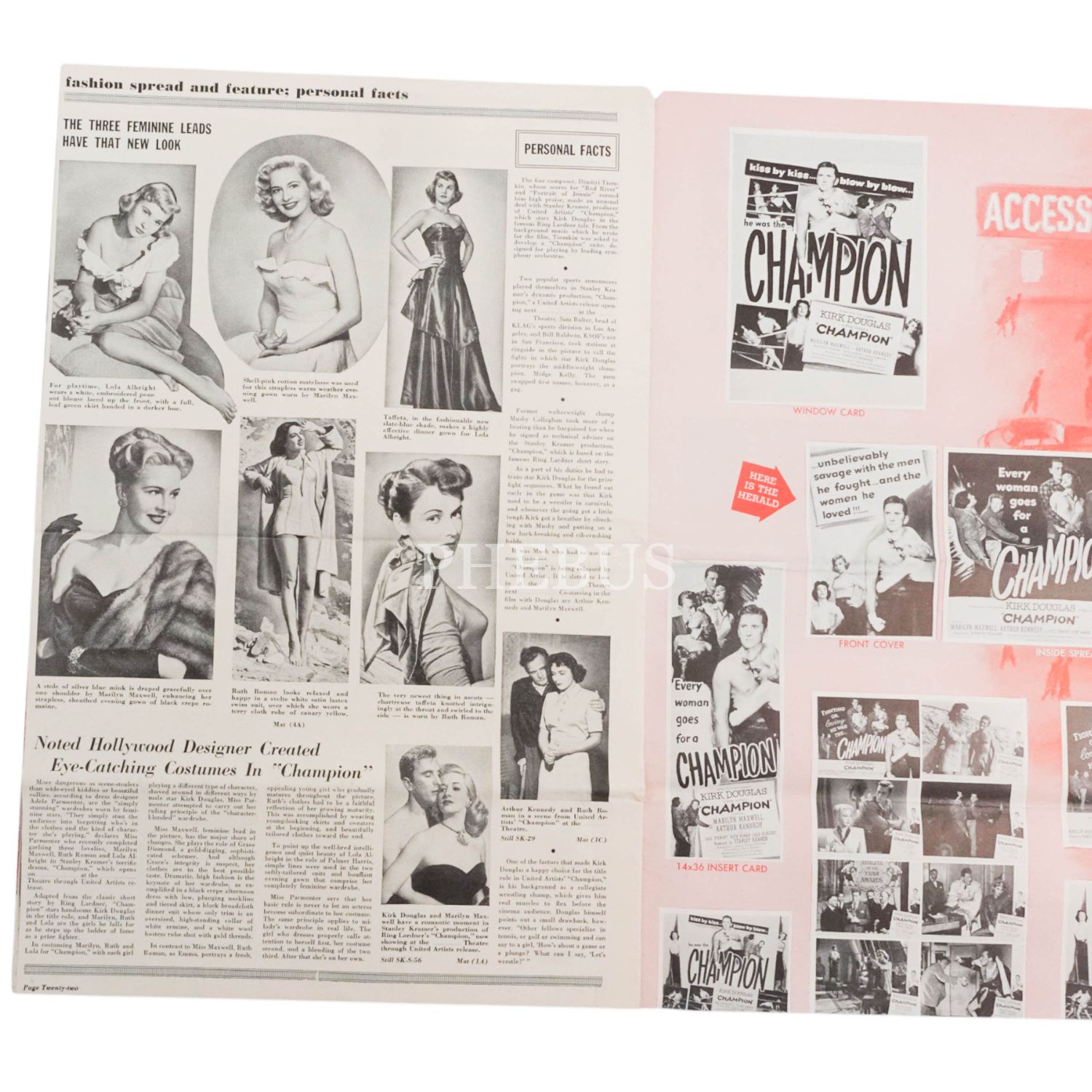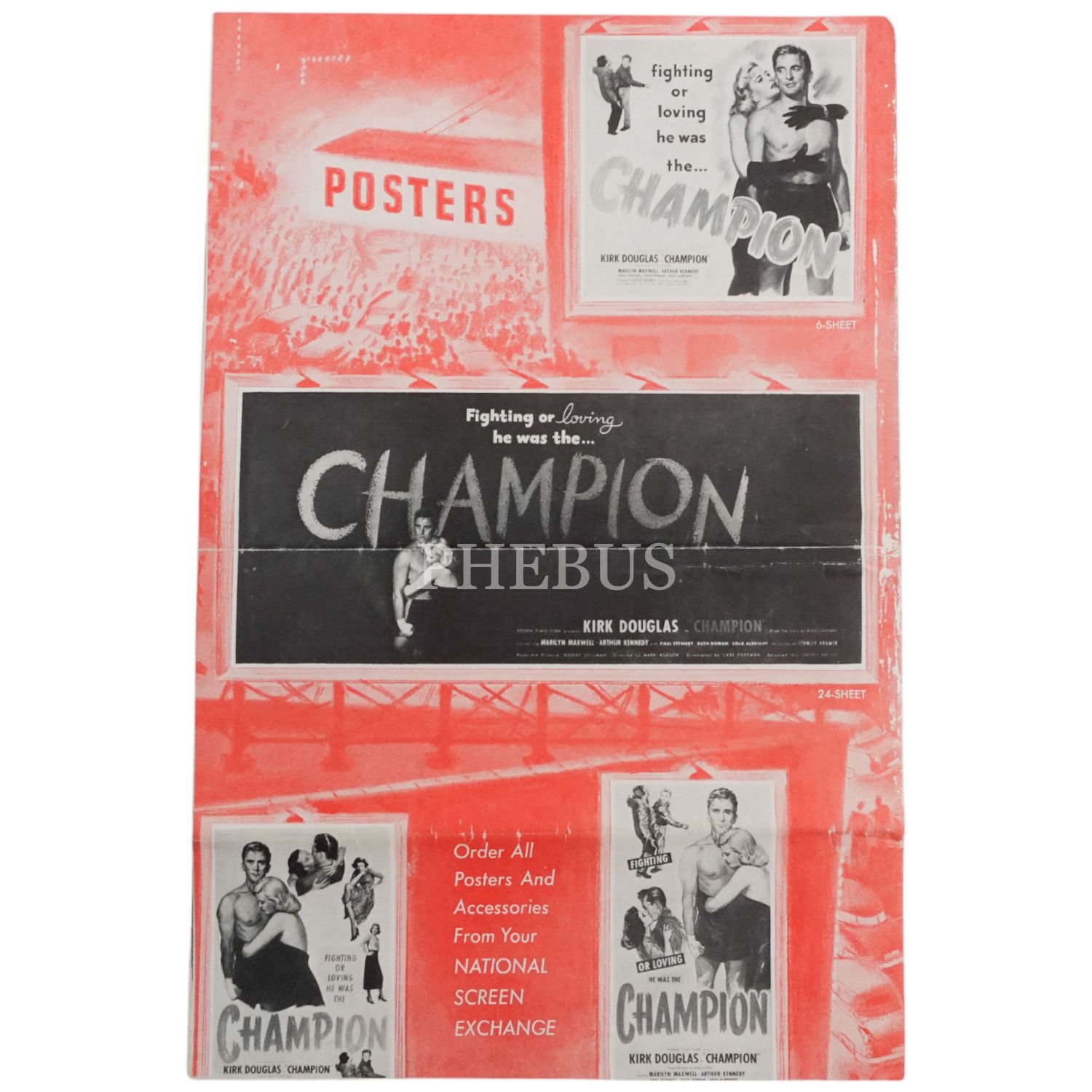 1949 yapımı, Kirk Douglas´ın başrolünde yer aldığı "Champion" filmine ait tanıtım broşürü, 22 sayfa, 27x41 cm...