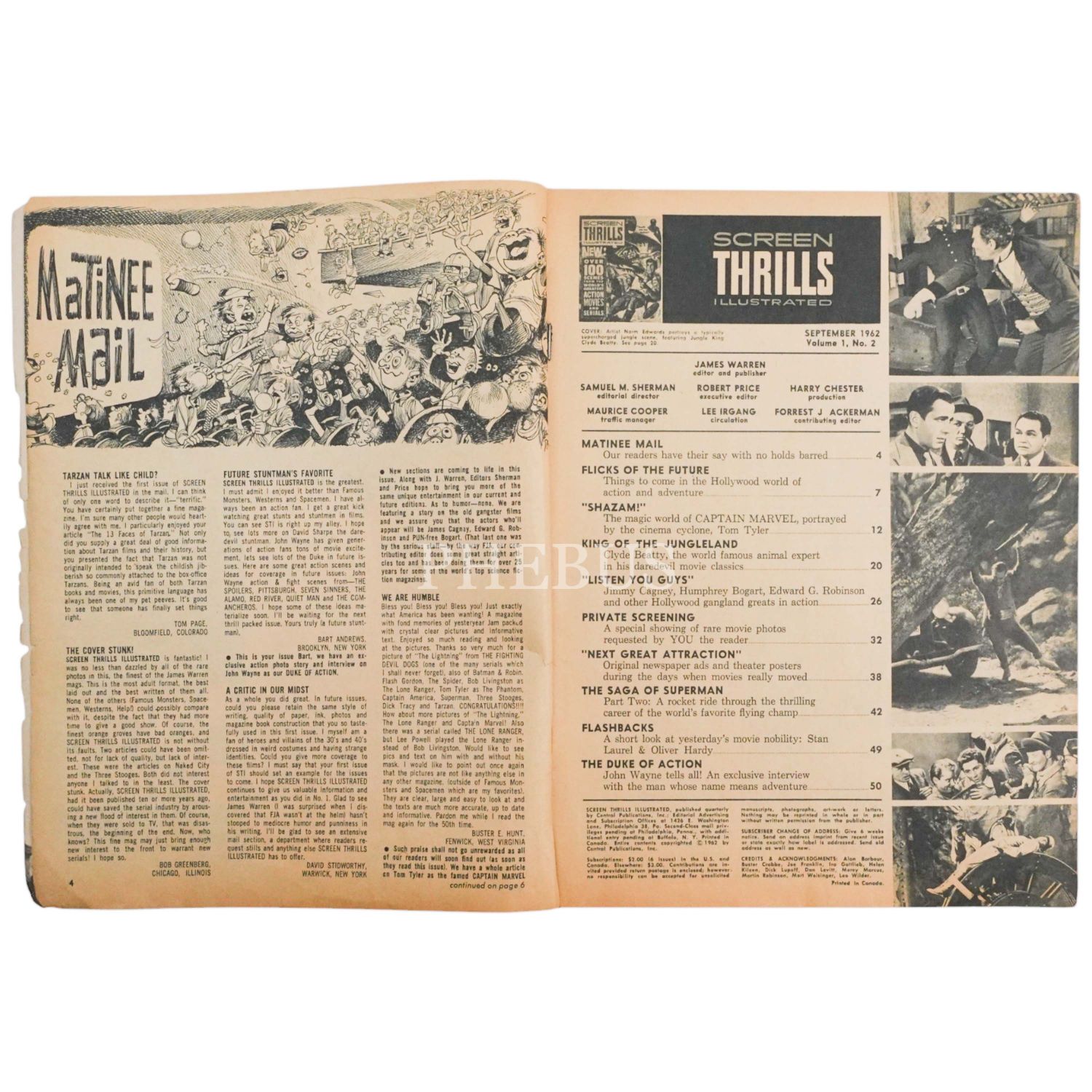 Yayıncı James Warren´ın editörlüğünde hazırlanan "Screen Thrills Illustrated" isimli derginin Ekim,1962 tarihli ilk cildinin ikinci sayısı, 65 sayfa, 21x28 cm...