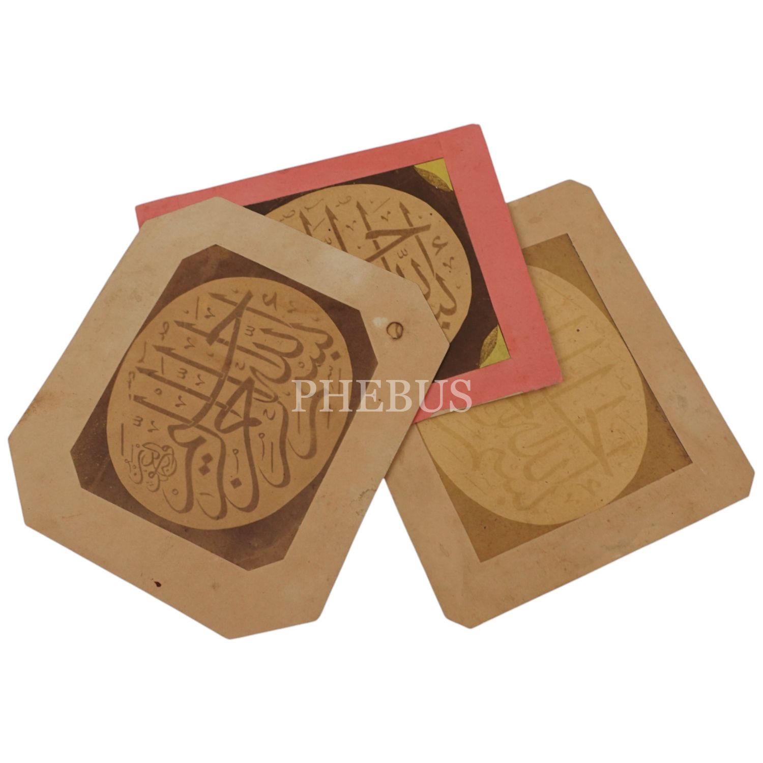 Üç adet Osmanlı dönemi sepya baskı muhakkak besmele fotoğrafı, yazı ölçü: 8x10 cm...