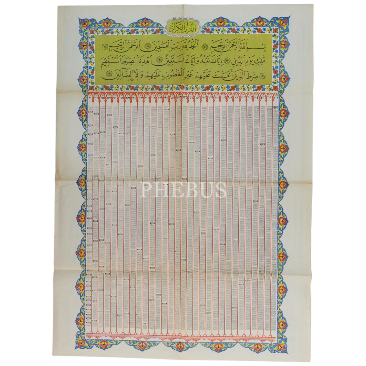 Tek sayfada tüm Kuran-ı Kerim, Hattat Hüseyin Kutlu´nun hattından baskı, 80x57 cm...