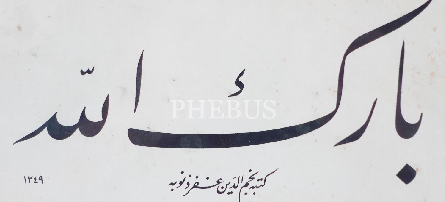 Baskı, Necmeddin Okyay ketebeli talik "Bârekallah" yazısı, çerçeve ölçü: 30x20 cm...