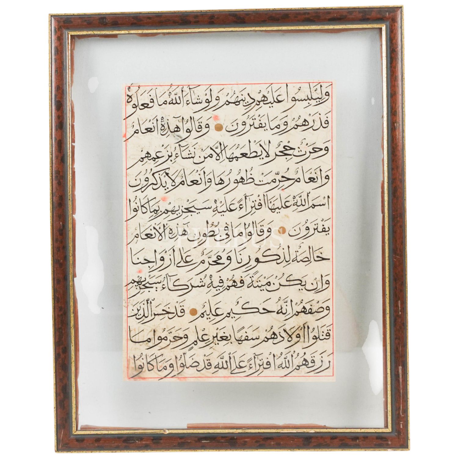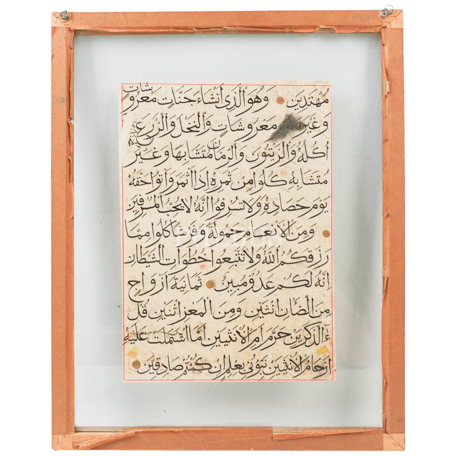 Erken Dönem muhakkak hattı ile yazılmış ayet-i kerimeler, yazı ölçü: 35x25 cm, çerçeve ölçü: 51x41 cm...