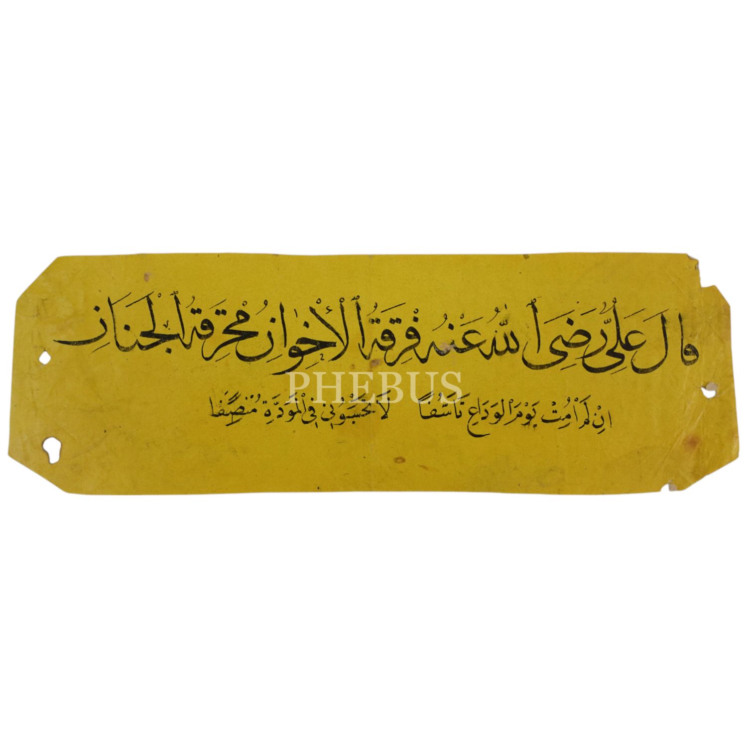 Hazreti Ali´ye nisbet edilen söz ve beyit: "Dostlardan ayrılmak bağları bahçeleri yakar. Veda anında üzüntüden ölmezsem / Benim sevgimi insaflı saymayın"