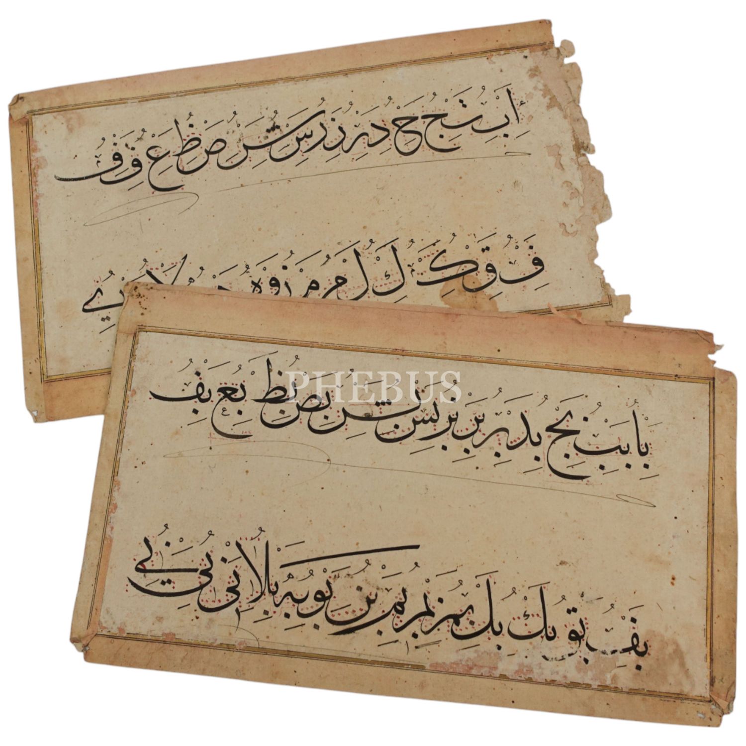 İki adet hoca işi sülüs hurufat meşki, 1185 tarihli, ölçüleri: 16x26 cm, 16x27 cm...