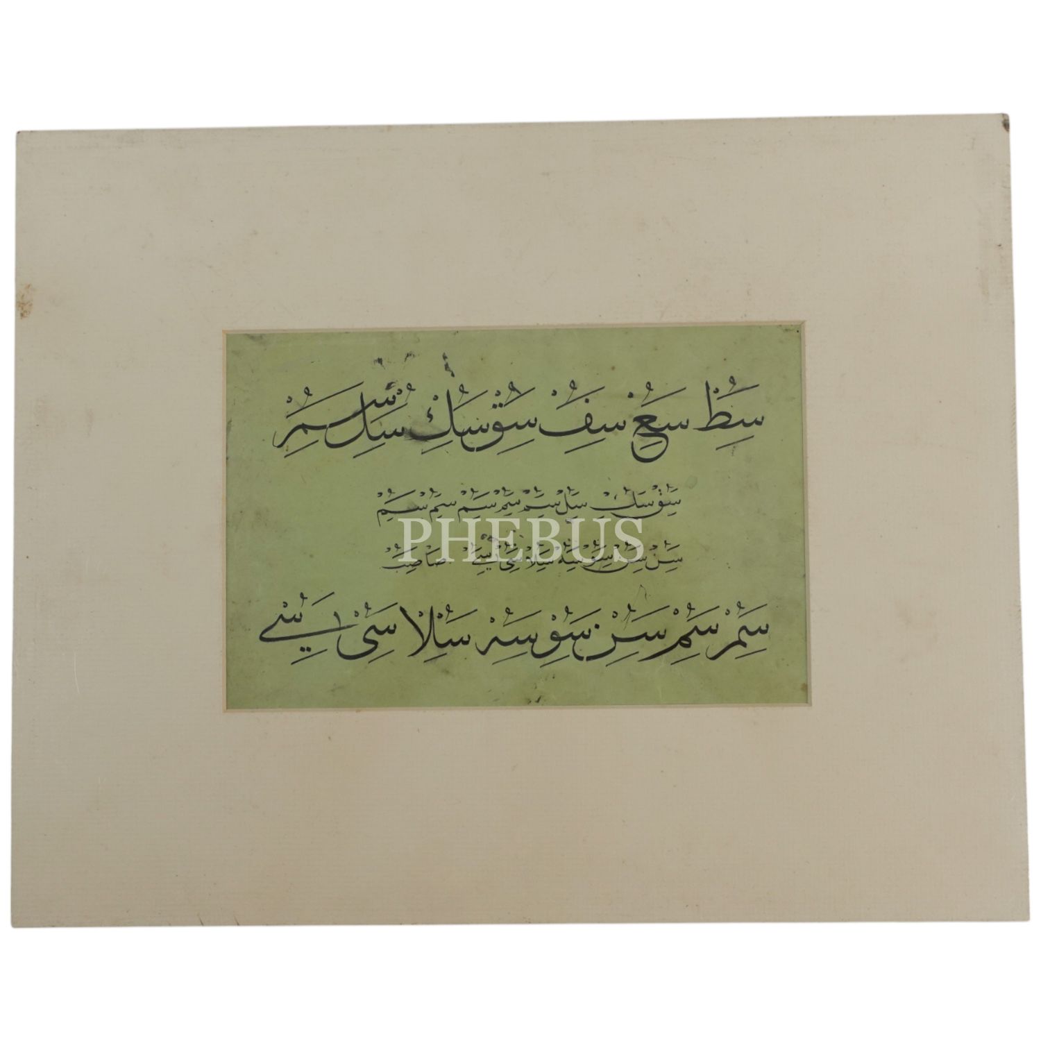Sülüs-nesih meşk, yazı ölçü: 15x23 cm, paspartu ölçü: 32x40 cm...