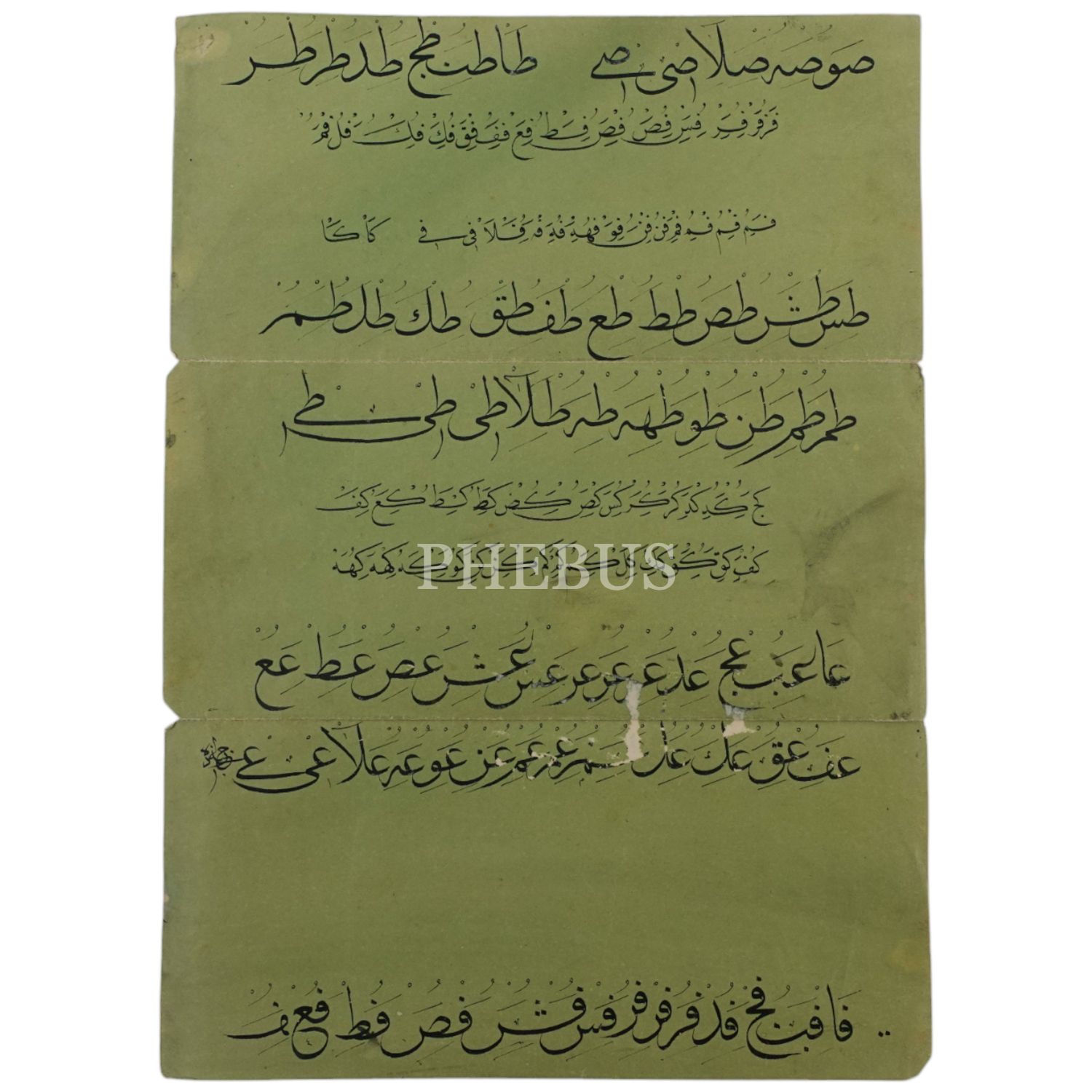 Üç sayfa sülüs-nesih hurufat meşki, 34x24 cm...