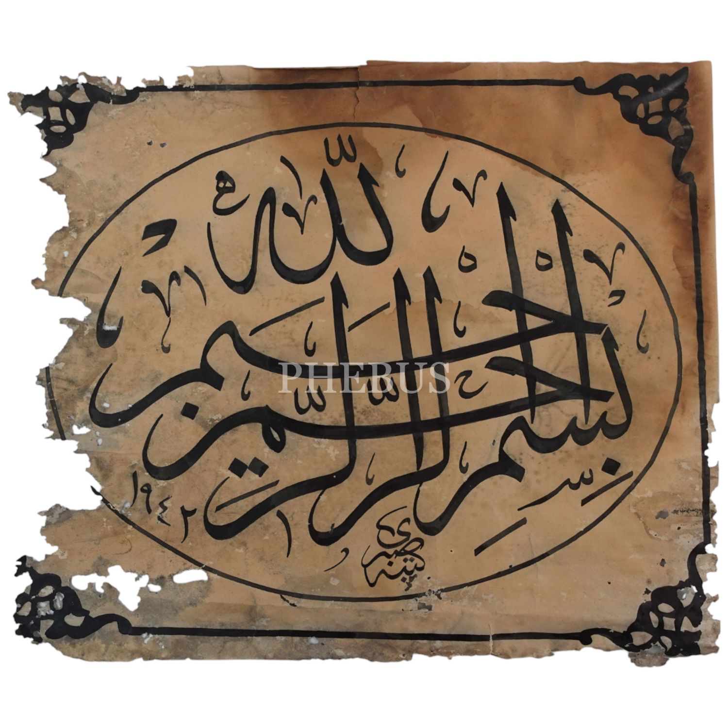 Sabri ketebeli celî sülüs istif besmele, 1942 tarihli, 39x44 cm...
