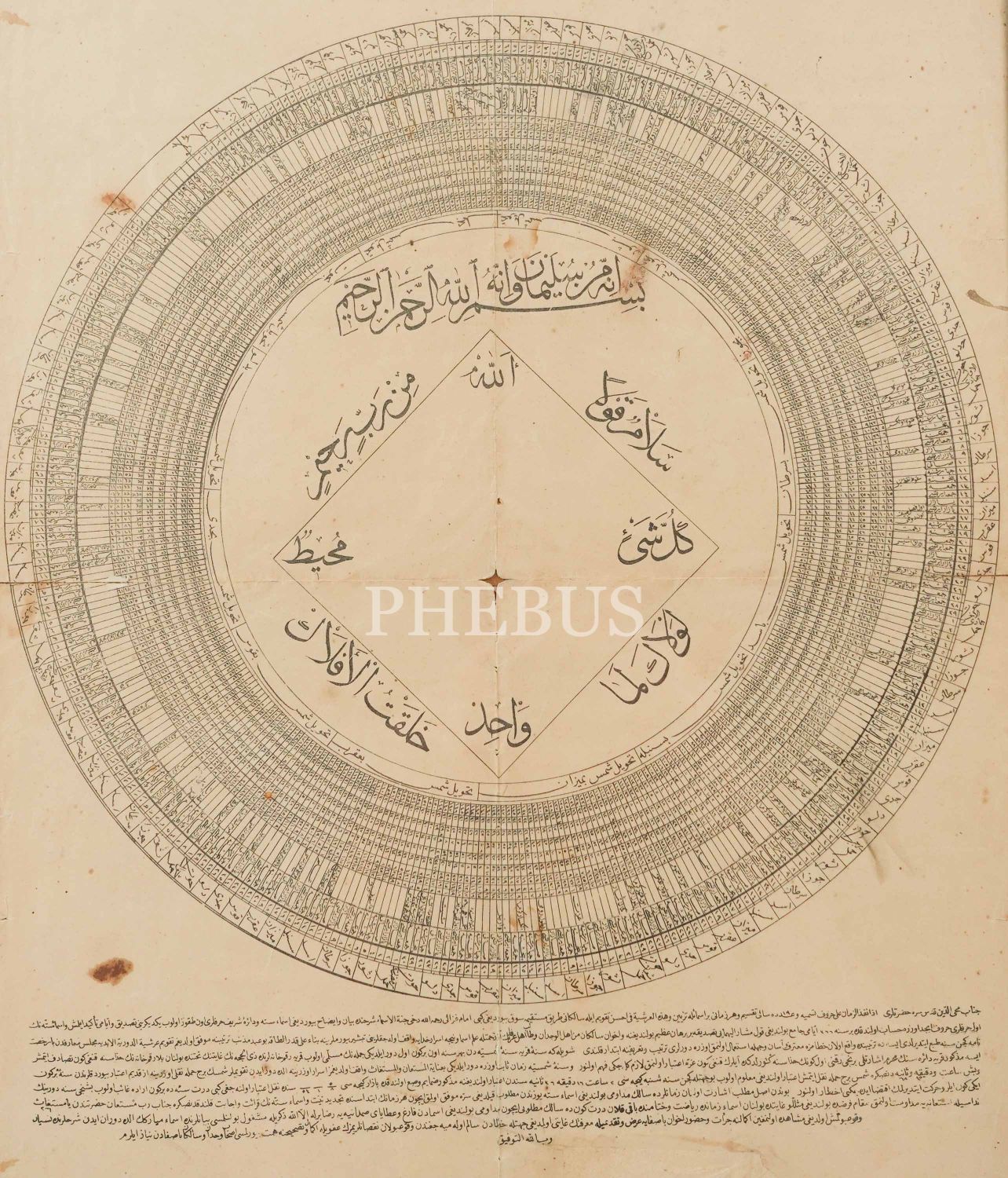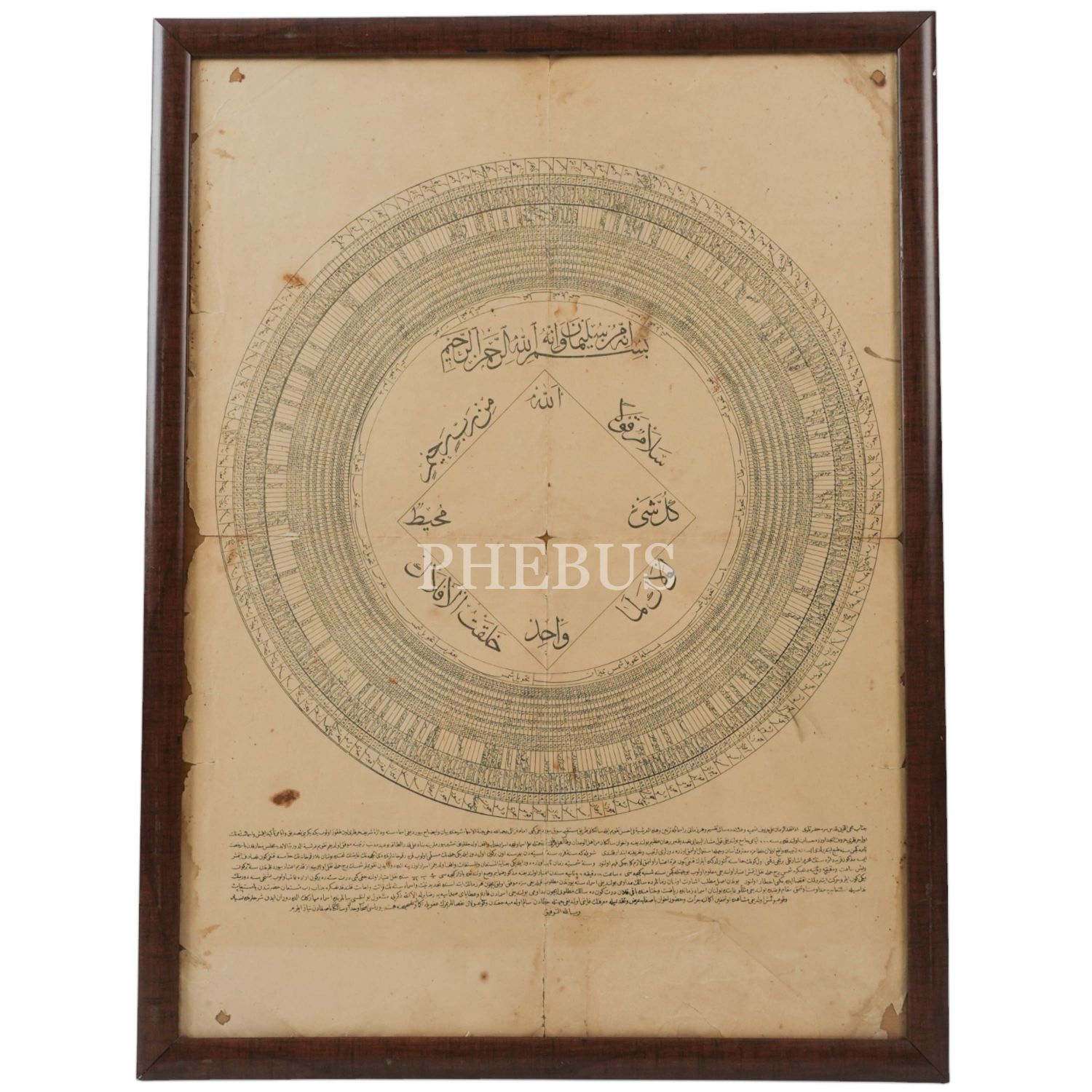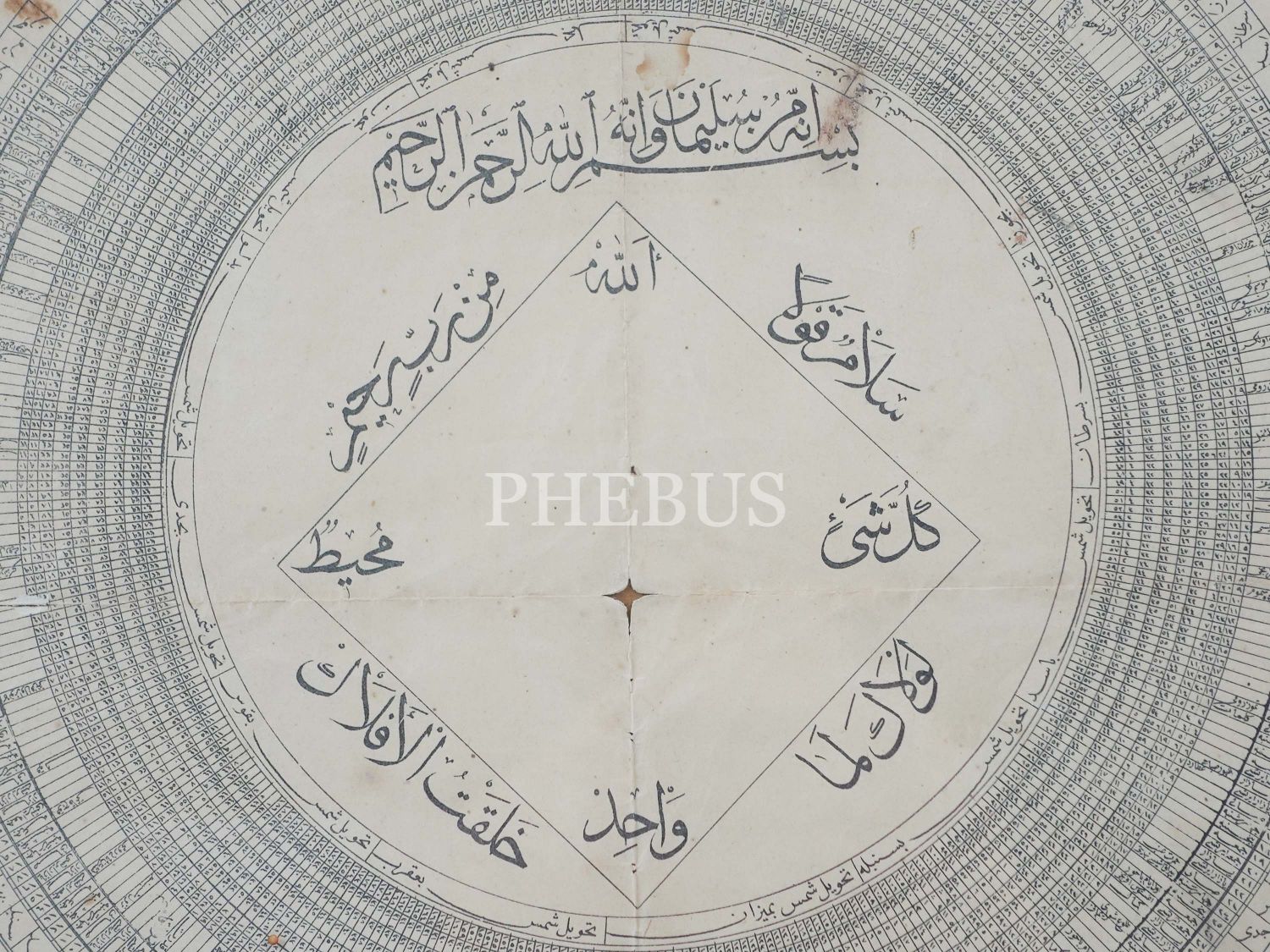 Hicrî ve şemsî takvimler arasındaki farkı gösteren taş baskı hesap tablosu, 55x41 cm...