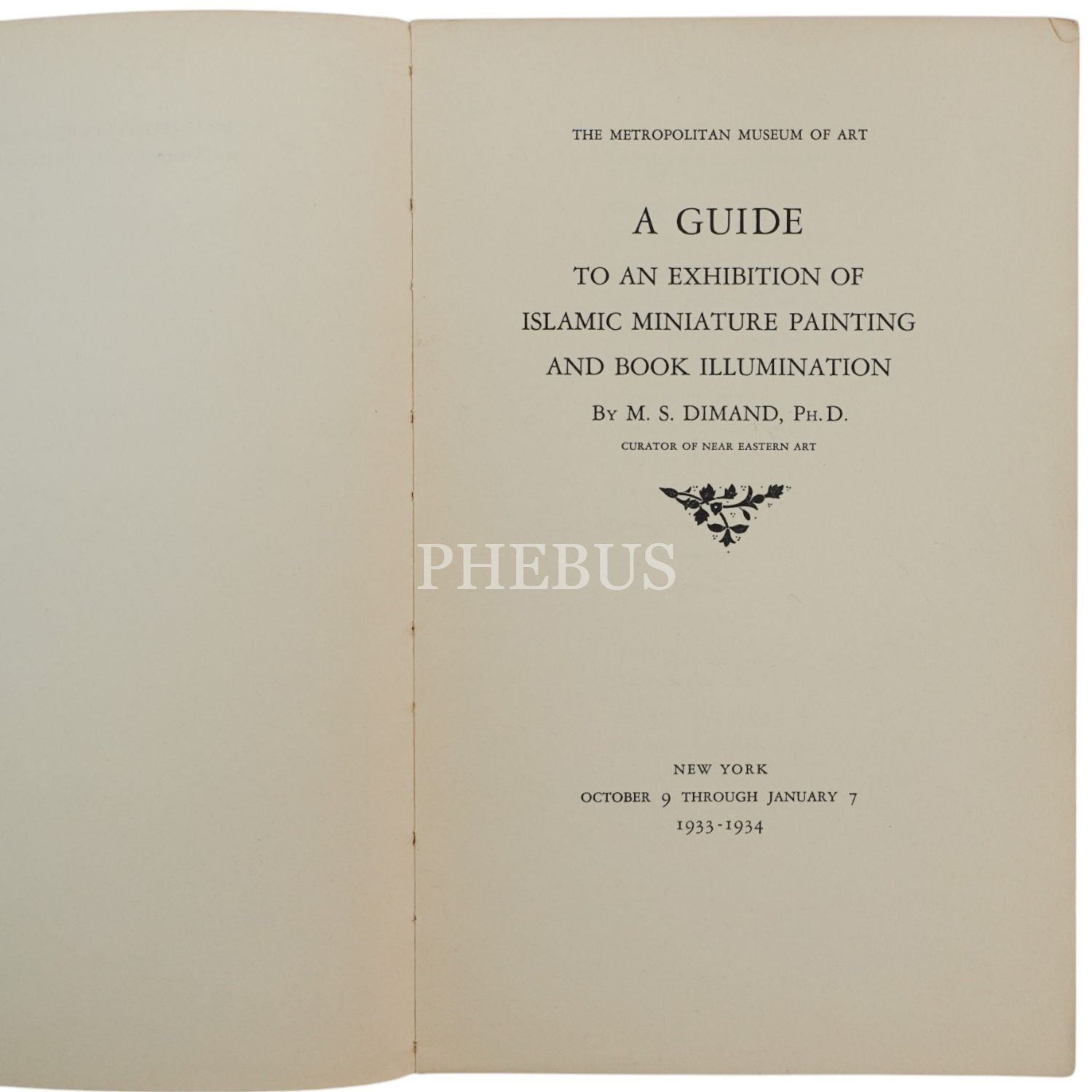 ISLAMIC MINIATURE PAINTING: A GUIDE TO AN EXHIBITION OF ISLAMIC MINIATURE PAINTING AND BOOK ALLUMINATION, M. S. DIMAND, The Metropolitan Museum of Art, 52 sayfa, 1933, New York, 22x14 cm...