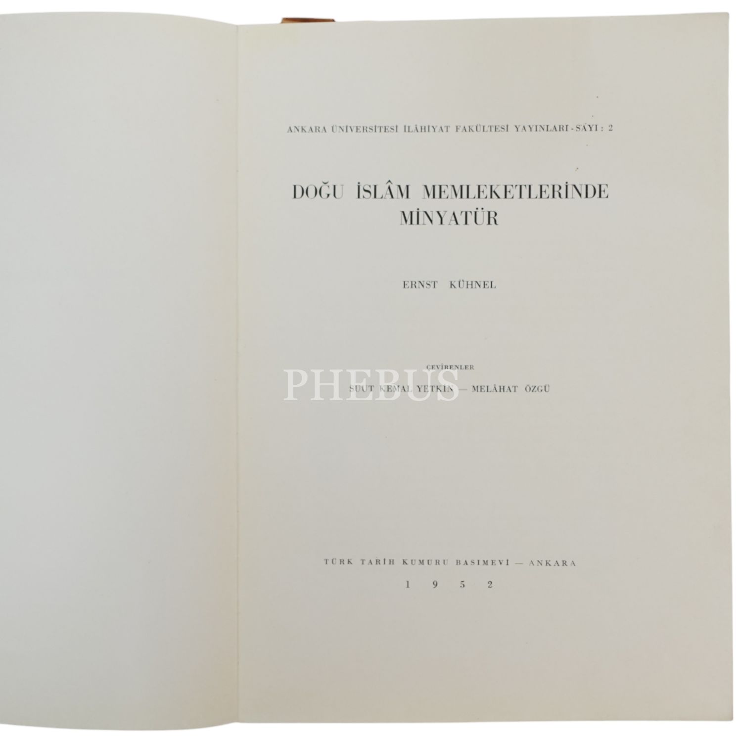 DOĞU İSLÂM MEMLEKETLERİNDE MİNYATÜR, Ernst Kühnel, Ankara Üniversitesi İlahiyat Fakültesi, 1952, 28x20 cm...
