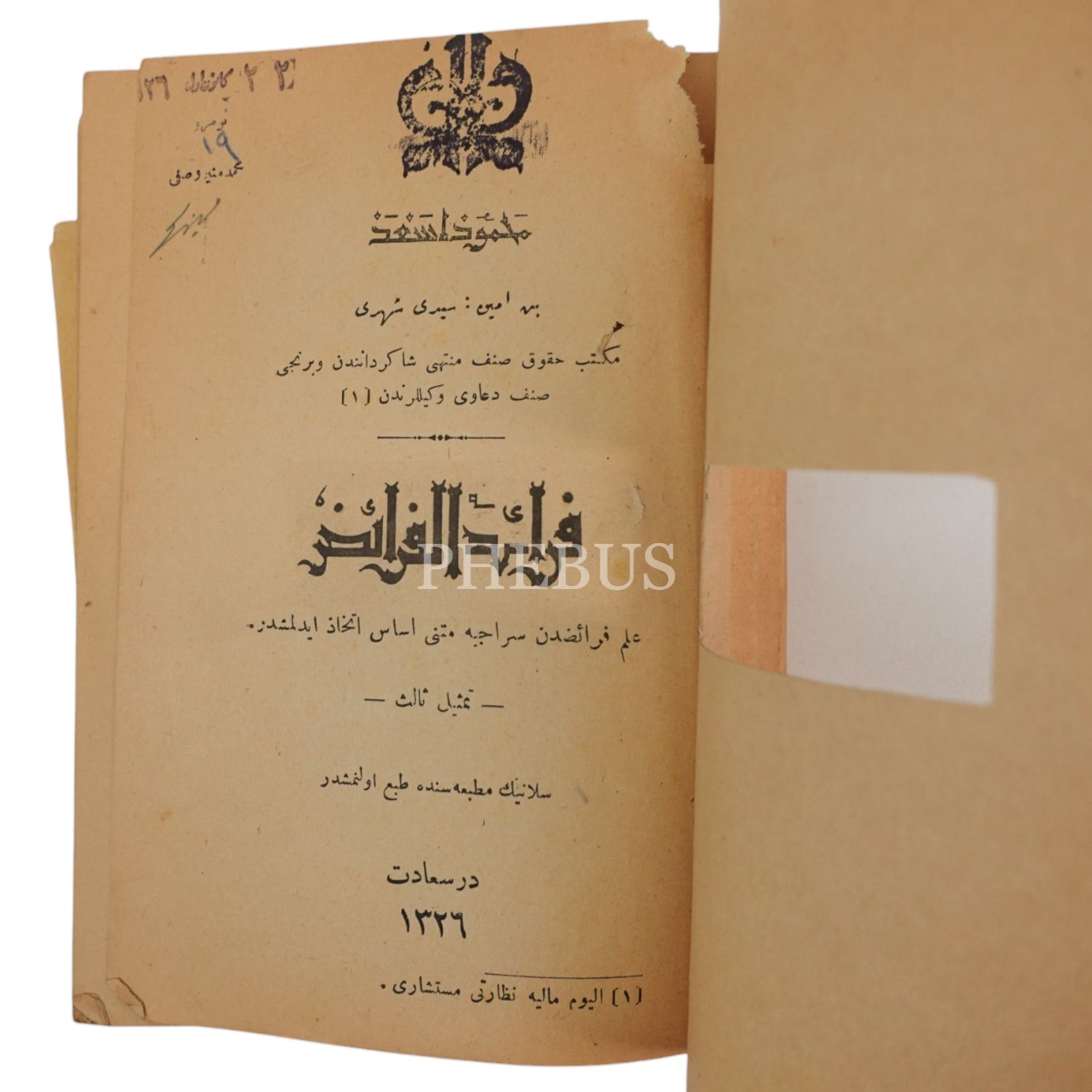 FERÂİDÜ´L-FERÂİZ, Mahmud Esad, Senalik Matbaası, İstanbul, 1326, 304 sayfa, 18x13 cm...