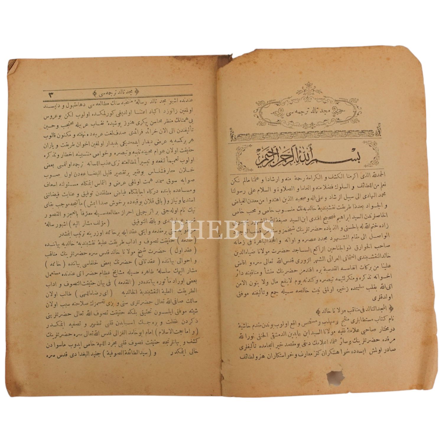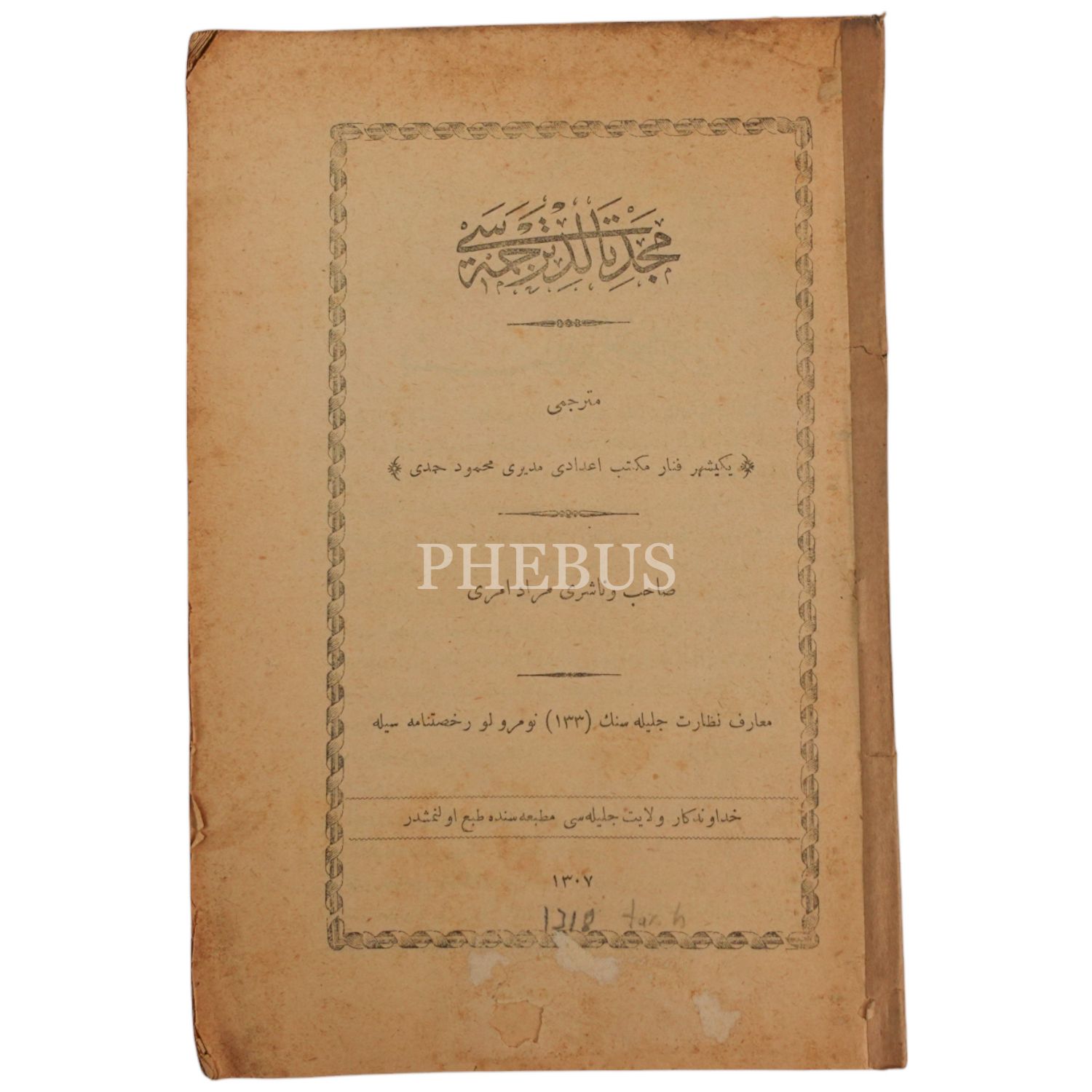 MECD-İ TÂLİD TERCÜMESİ, tercüme: Yenişehir Fener Mekteb-i İdadi müdürü Mahmud Hamdi, Hüdavendigâr Vilayet Matbaası, 1333 tarihli, 104 sayfa, 23x15 cm...