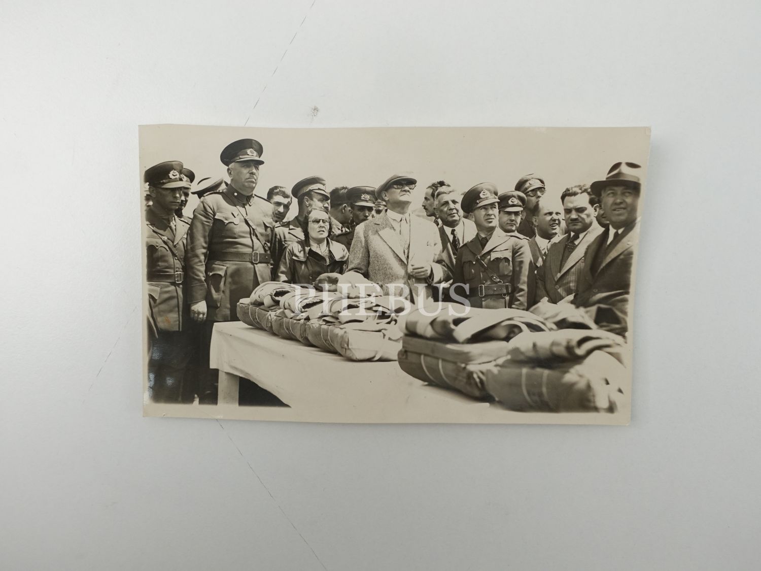 Mustafa Kemal Atatürk, Sabiha Gökçen ve Fahrettin Altay 9 Haziran 1936 tarihinde Eskişehir Hava Mektebi Kumandanlığı ziyaretinde, 16x10 cm...